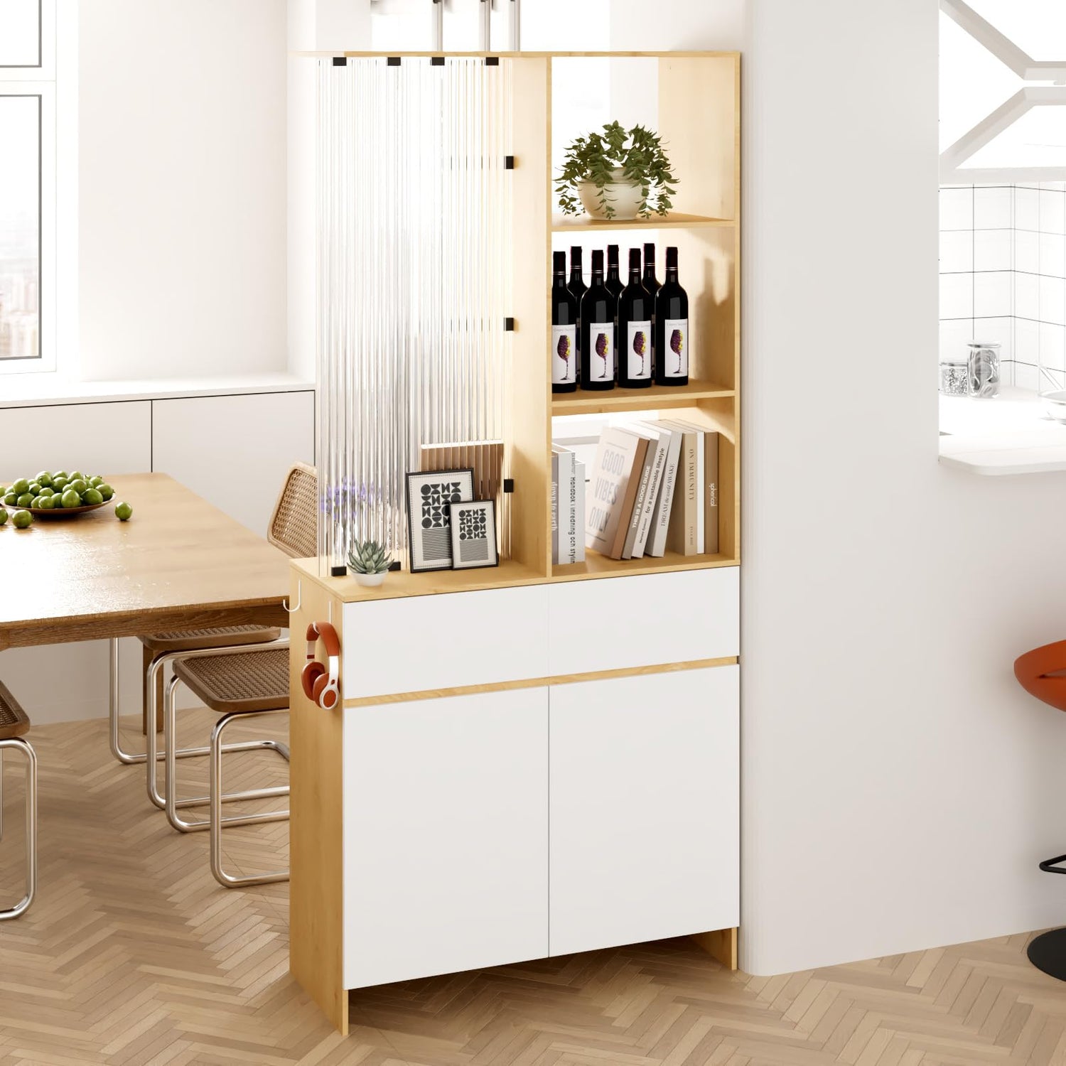 - 【Stylish Partition Cabinet with Ripple Glass】Crafted with durable wave-pattern glass panels, this room divider cabinet delivers high light transmission while creating a soft, hazy aesthetic. It enhances the elegance of your home while serving as a privacy screen and decorative partition. The handle-free cabinet doors add a sleek, modern minimalist touch.