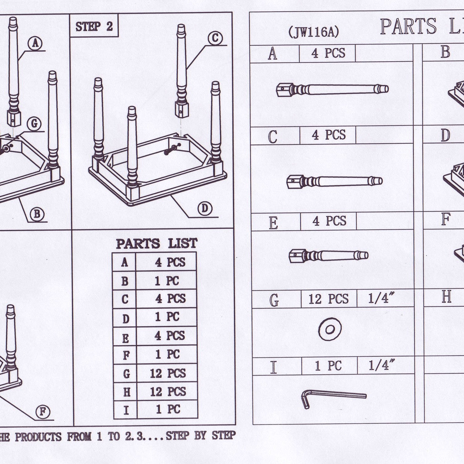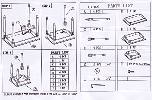 • Middle table: 16'' H x 17'' W x 12.5'' D
