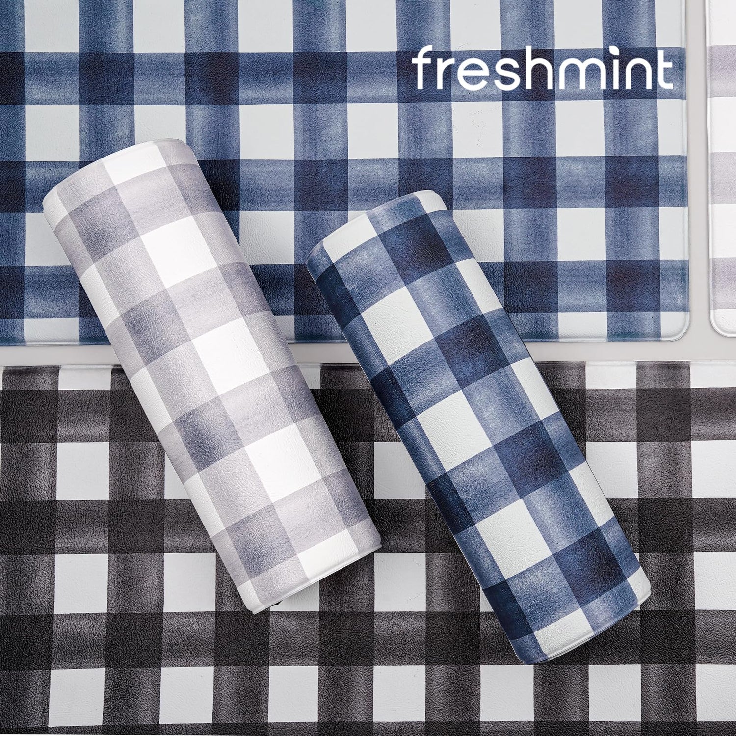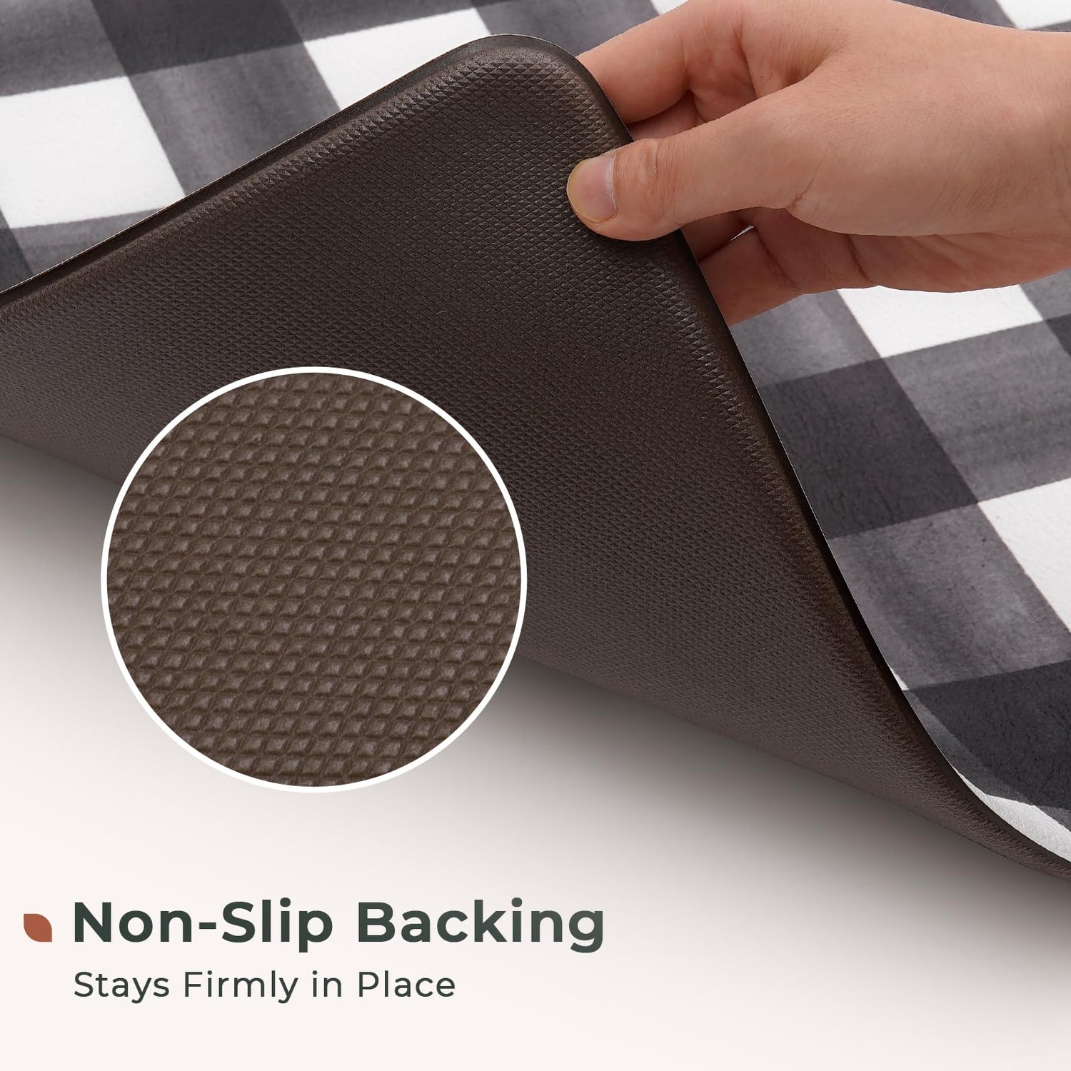 FRESHMINT Modern Farmhouse Plaid 2 Piece Set Kitchen Mats for Floor Anti Fatigue Waterproof & Non-Skid Kitchen Rugs Cushioned Kitchen Mat for Standing Washable Comfort Desk Kitchen Runners