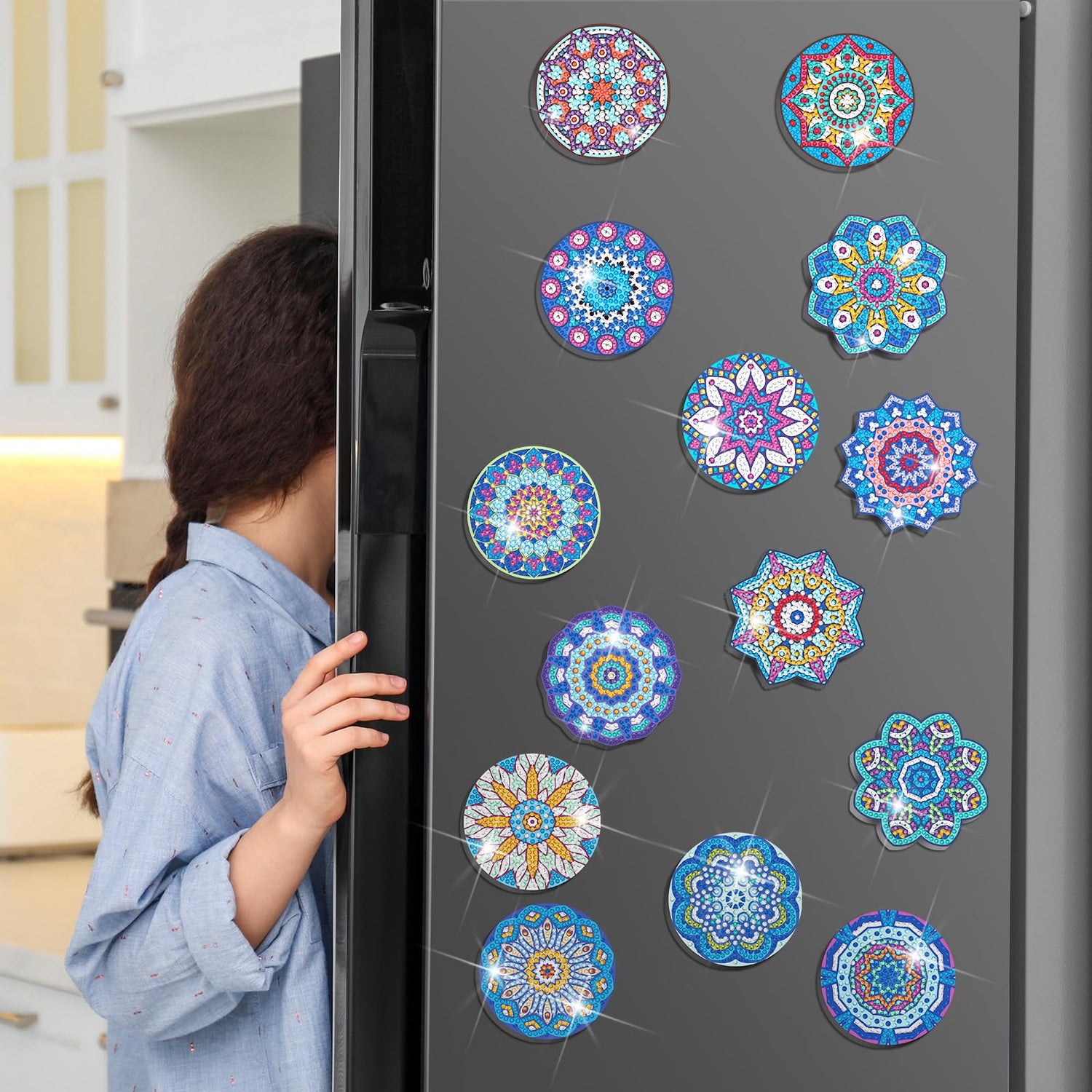 - Package Contents: inside the package, you will find 30 delightful Mandala shaped diamond art magnets for adults; These add a joyful touch to your home space and are plentiful enough for replacement and regular use