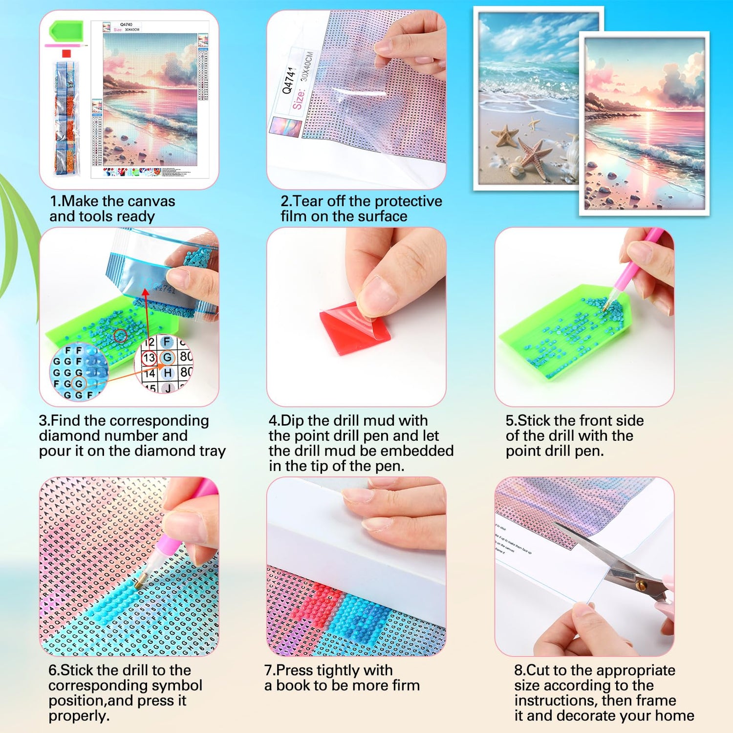- Ideal Home Decoration: our diamond painting kits come in 6 different ocean patterns, which can easily meet your different taste needs; After completion, it can be hung on the wall of the room, placed on the wall cabinet, and so on, adding a touch of warmth to your room; It is your ideal decoration choice