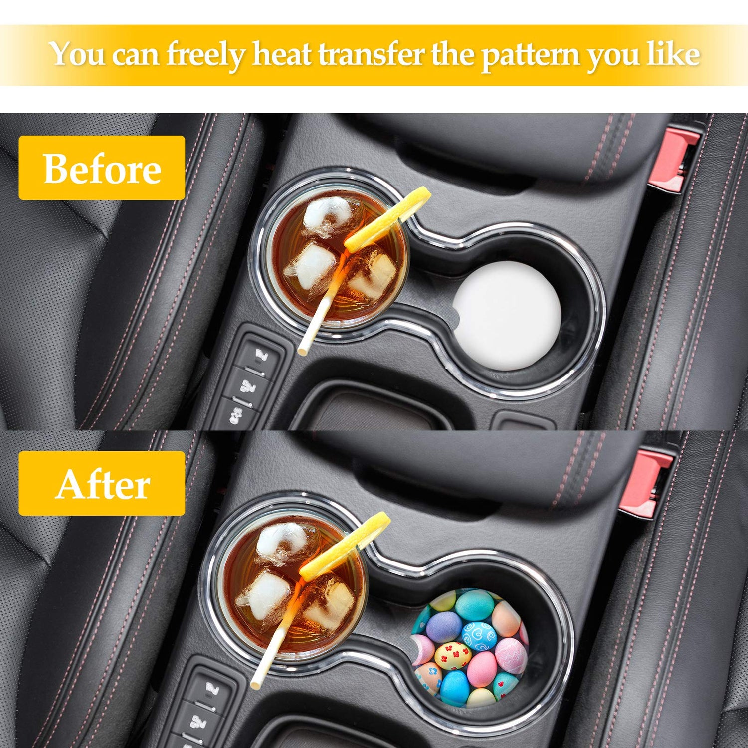 - Material and Size: these car cup holders are made of quality ceramics, with thermal transfer layer, you can freely make them; The size measures approx. 6.5 cm/ 2.6 inch in diameter, and 0.6 cm/ 0.24 inch in thickness, suitable for most cars, trucks, boats, SUV and trucks; Before placing order, please measure your car cupholder's diameter