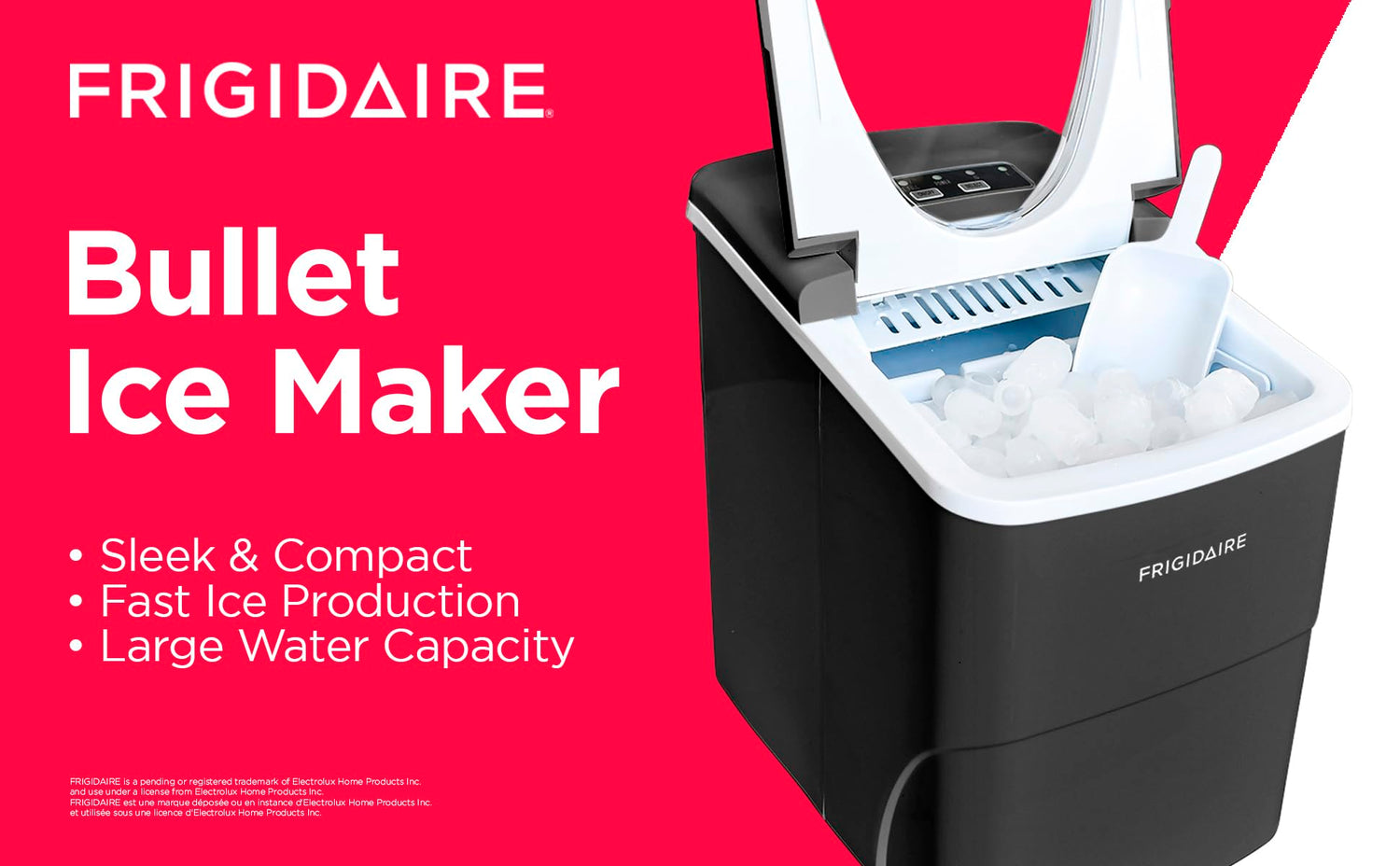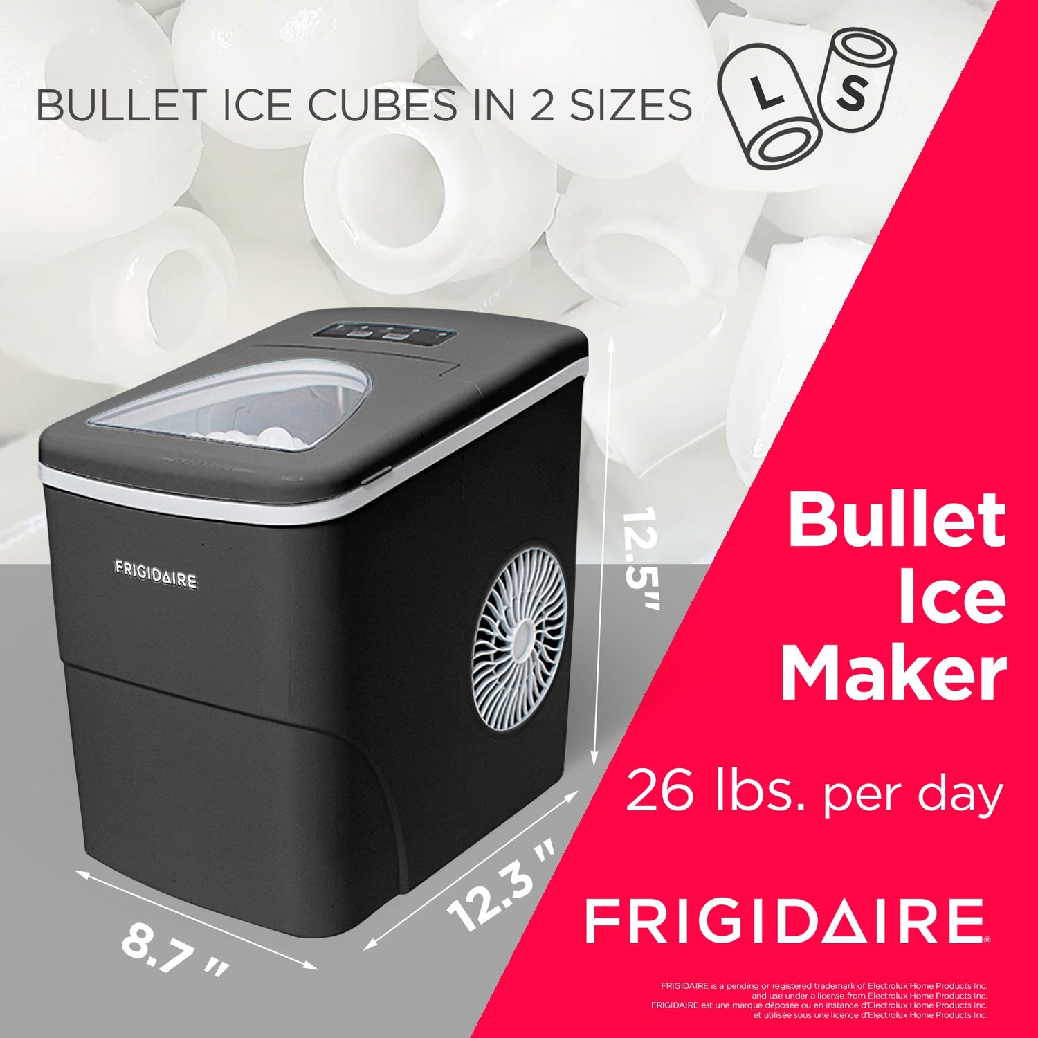 - Frigidaire Black Ice maker - produces 26 pounds of ice per day - and ice in as little as 6 minutes