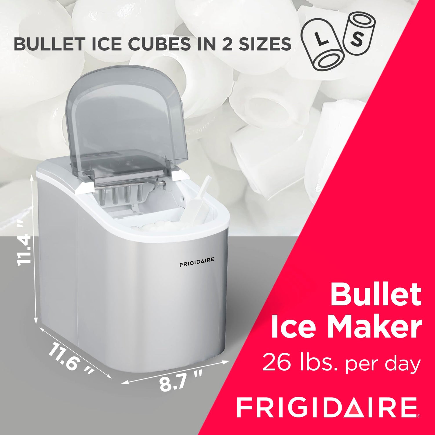 FRIGIDAIRE EFIC189-Silver Compact Ice Maker, 26 lb per Day, Silver