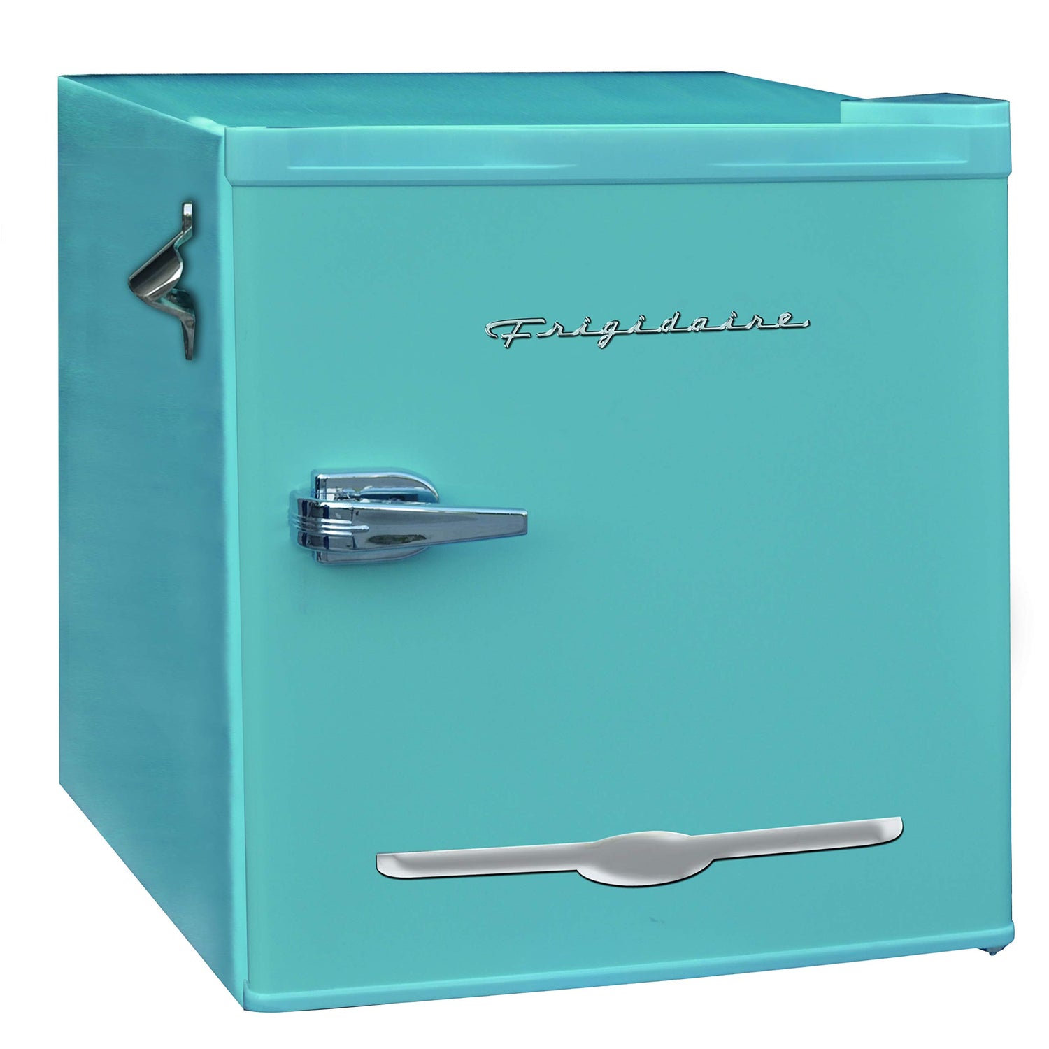 Chill in Style Perfect for dorm rooms, offices, bedrooms, and cabins, this Frigidaire retro compact fridge will add a vintage feel to any space. Enjoy easy access to your favorite beverages with the built-in bottle opener, interior wire shelf, and door baskets for convenient organization. A chiller compartment and ice tray are also included so you can enjoy frosty cold drinks right at your fingertips. Compact yet spacious, this small fridge offers 1.6 cu. ft. of storage capacity, making it the ideal solution for when you want quick access to cold drinks and snacks.