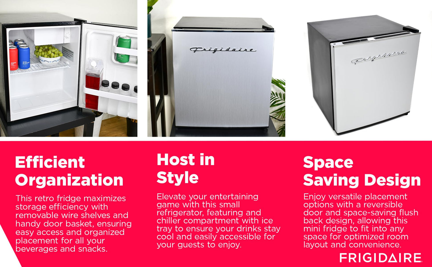 Frigidaire EFR182 1.6 cu ft Stainless Steel Mini Fridge. Perfect for Home or The Office. Platinum Series, 1.8