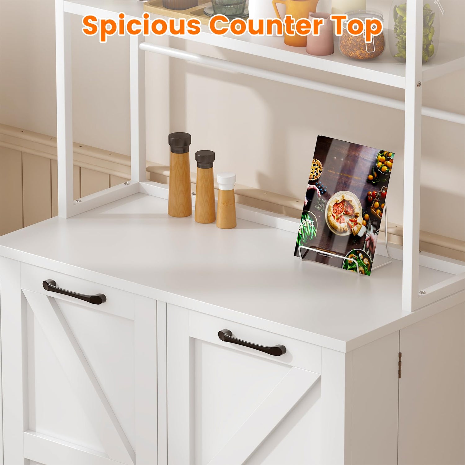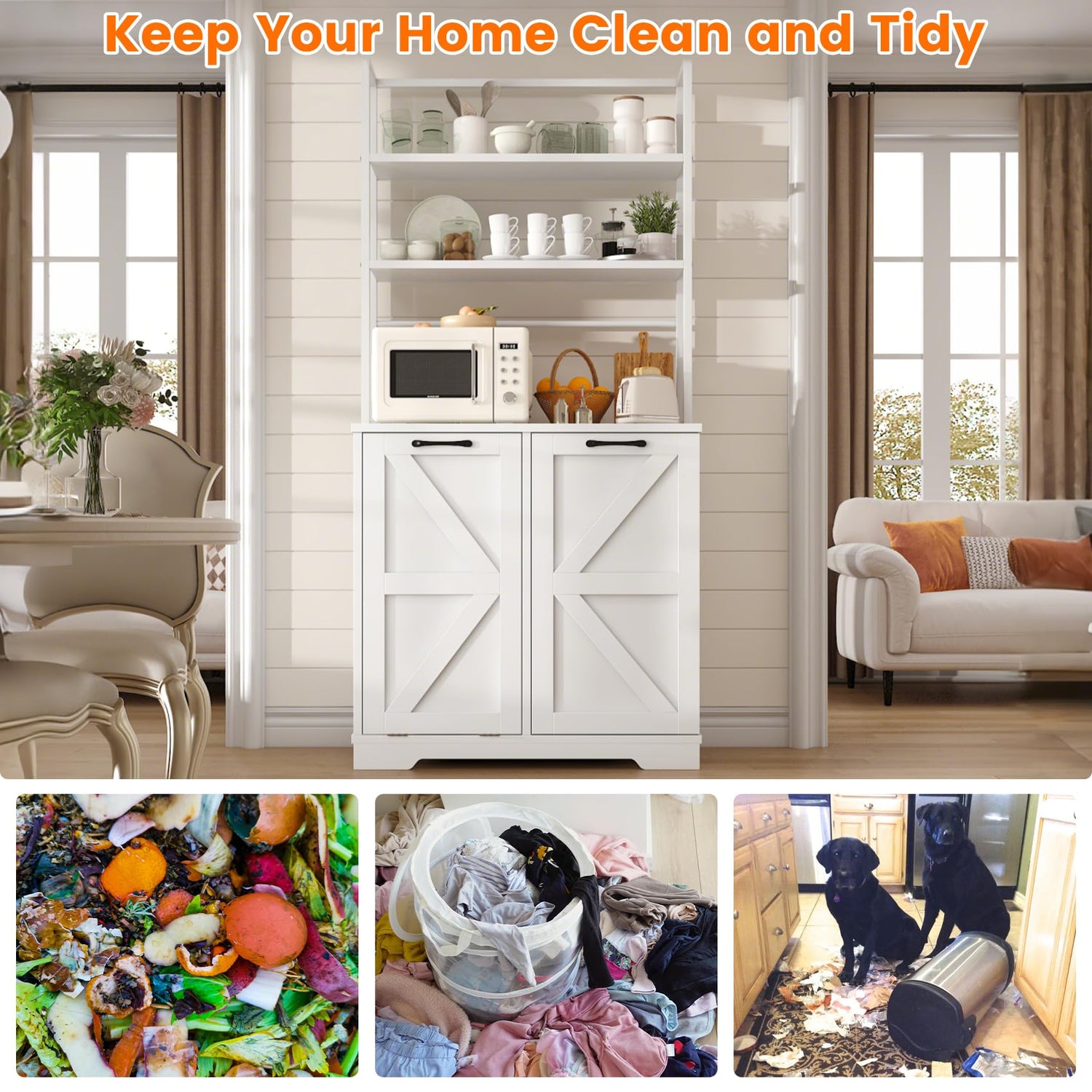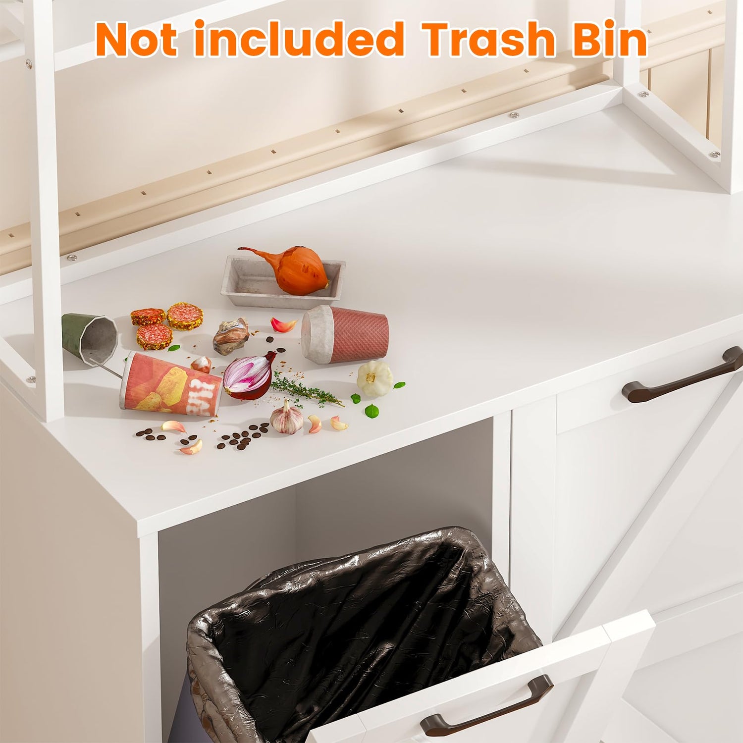 Frmobepts Kitchen Bakers Rack with Storage, 68'' Tall 6 Tier Farmhouse Pantry Cabinet with Trash Bin Cabinet, Microwave Stand Kitchen Cabinet with Hutch,White