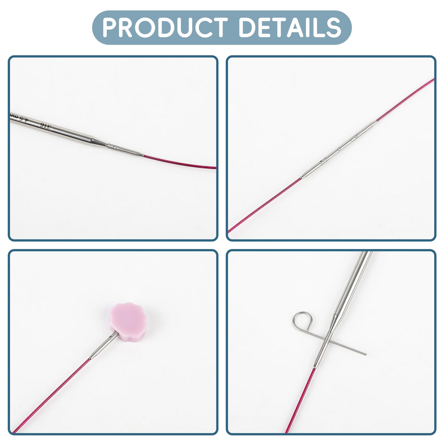 - 【4 Flexible Cables (16in, 24in, 32in, 40in)】 – Smooth, memory-free purple cables designed for easy handling and flexibility. Perfect for circular, magic loop, or flat knitting, with consistent performance and easy matching to your needle tips. Easily switch needle sizes and cable lengths with the included tightening keys and connectors.