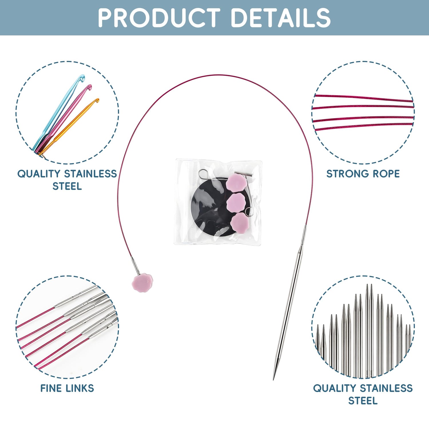 - 【Perfect Gift for Knitting Enthusiasts】 – A thoughtful gift for any occasion—Christmas, birthdays, Mother’s Day, or Valentine’s. This complete interchangeable knitting needle set is a must-have for anyone passionate about knitting, offering convenience, versatility, and creative freedom in one beautifully packaged kit.