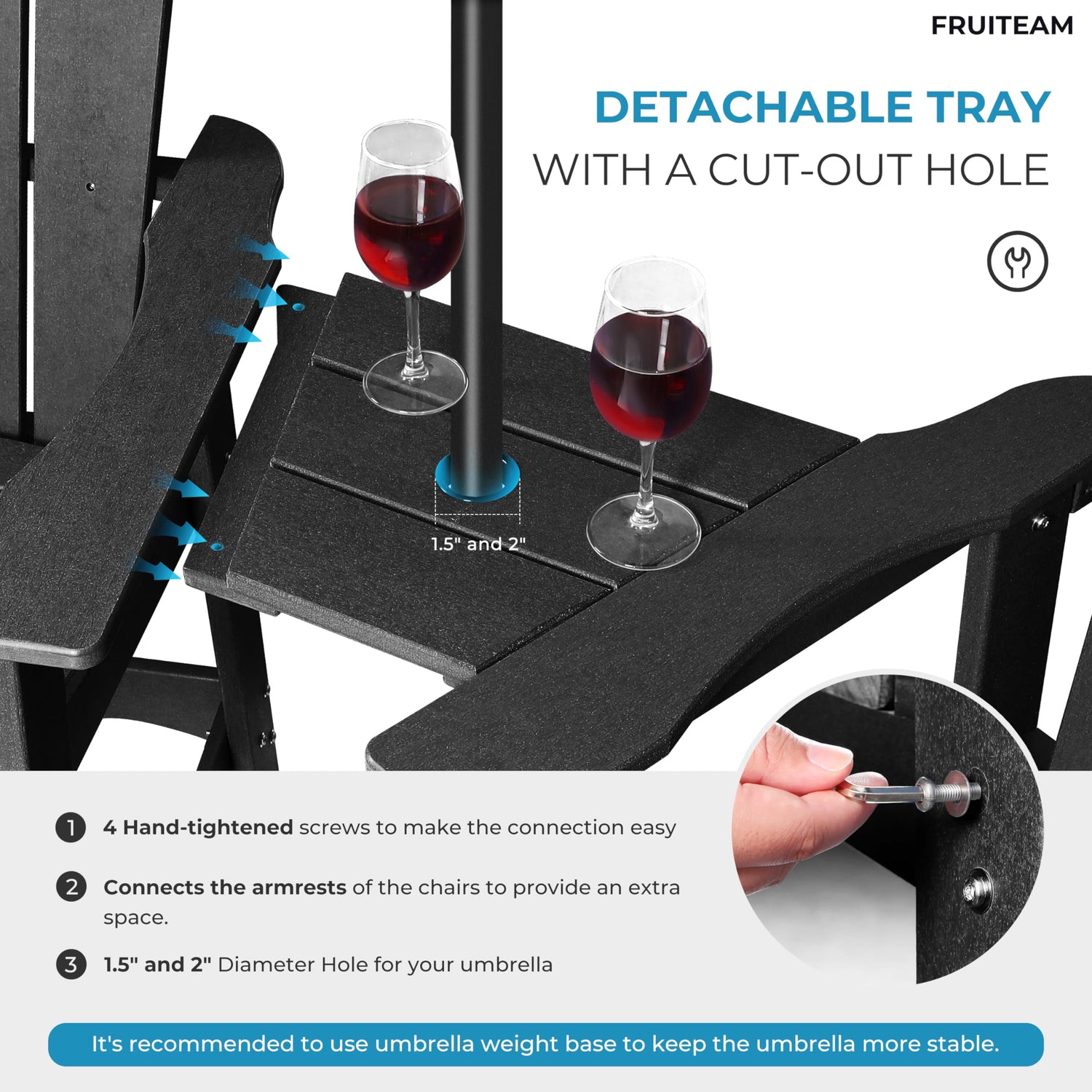 - Style Options: Choose from a range of designs to complement your outdoor decor, and elevate your outdoor experience with our weather-resistant Adirondack chairs set with connecting tray.