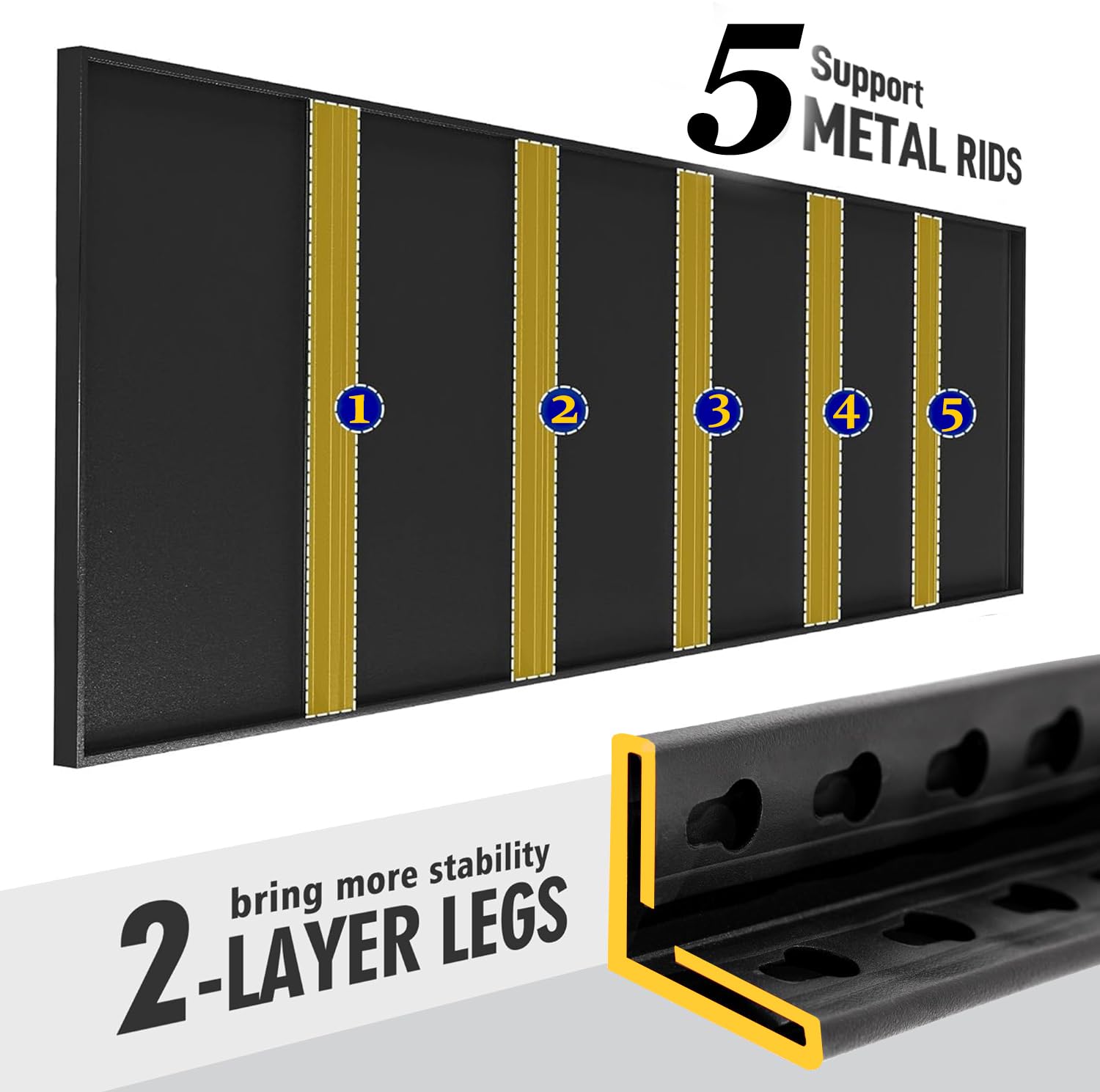 - 【2000LBS Capacity Garage Storage Shelves Heavy Duty】Fssevxi garage shelving made of high-quality metal frame, and thickened metal shelf with 4 ribs beneath,so each tier can hold up to 400 lbs, with a total bearing capacity of 2000 lbs. Garage shelving unit more stable, solid and more stuff can be stored. 5-tier Industrial garage shelves are designed to withstand wear and tear, ensuring long-term use.