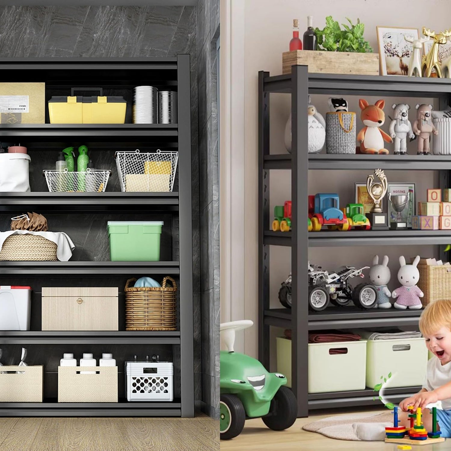 - 【Easy Assembly Garage Storage Shelve】The heavy duty garage shelving designed with innovative click-and-lock system for easy and quick assembly - No bolts, no screws and nuts required, quick assembly this heavy duty shelving in 10 minutes.