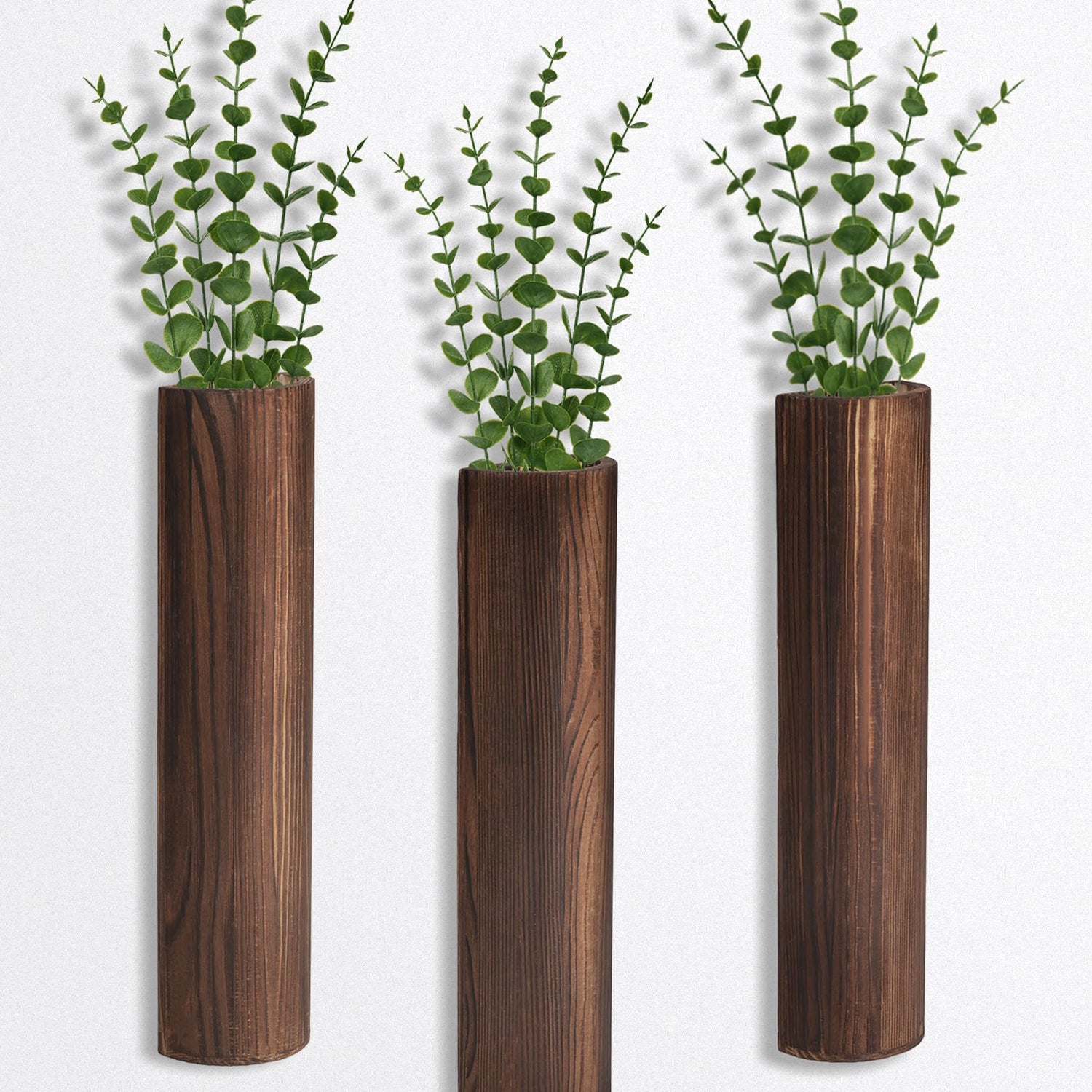 Fttoyoly 3 Pack Wood Wall Planter with Artificial Eucalyptus, Modern Wall Decor for Living Room Bedroom Bathroom Entryway, Farmhouse Boho Wall Vases for Dried Flowers and Faux Plants