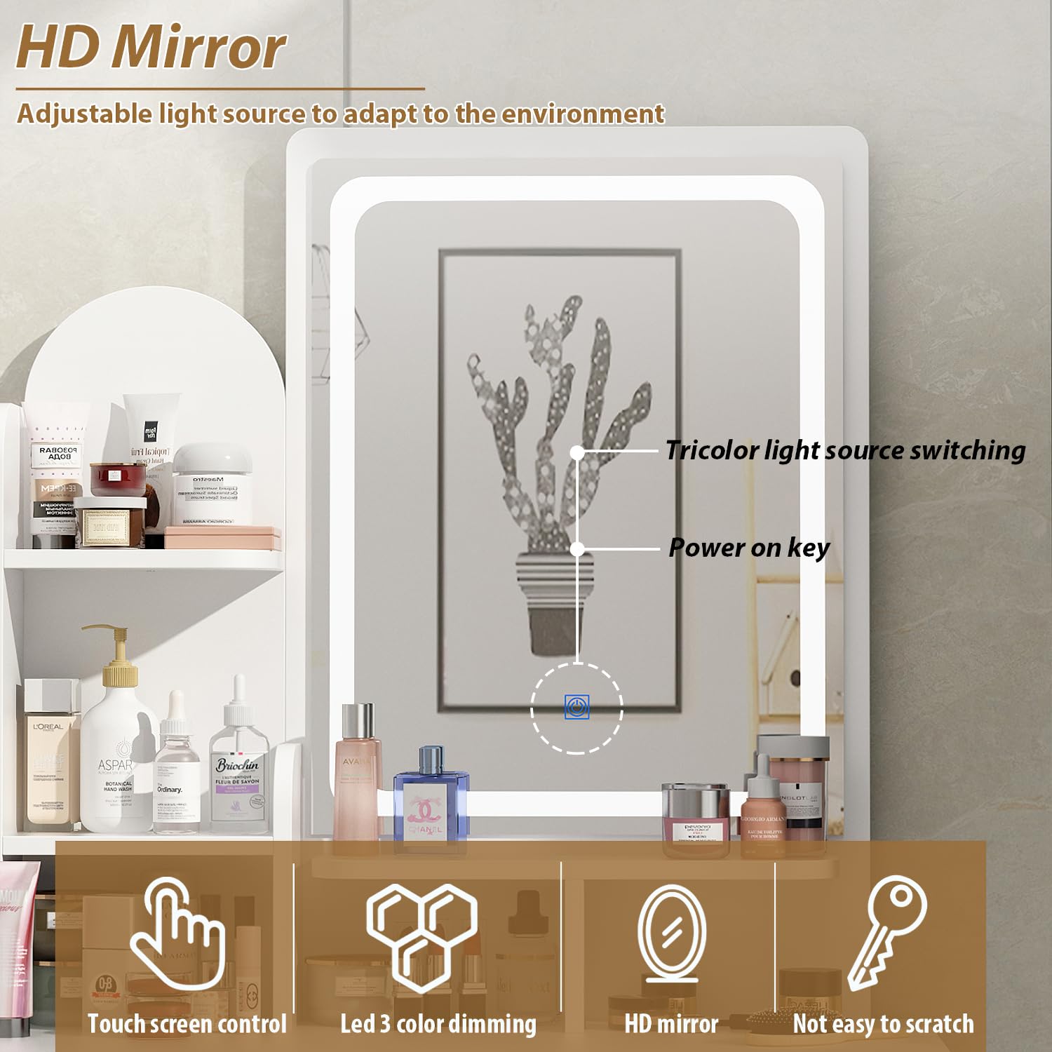- STYLISH YET FUNCTIONAL - Whether you're prepping for a day at work or gearing up to go out with the girls, this table gives the modern vanity experience—a slim and sleek yet glamorous design that provides superior lighted mirror reflection clarity