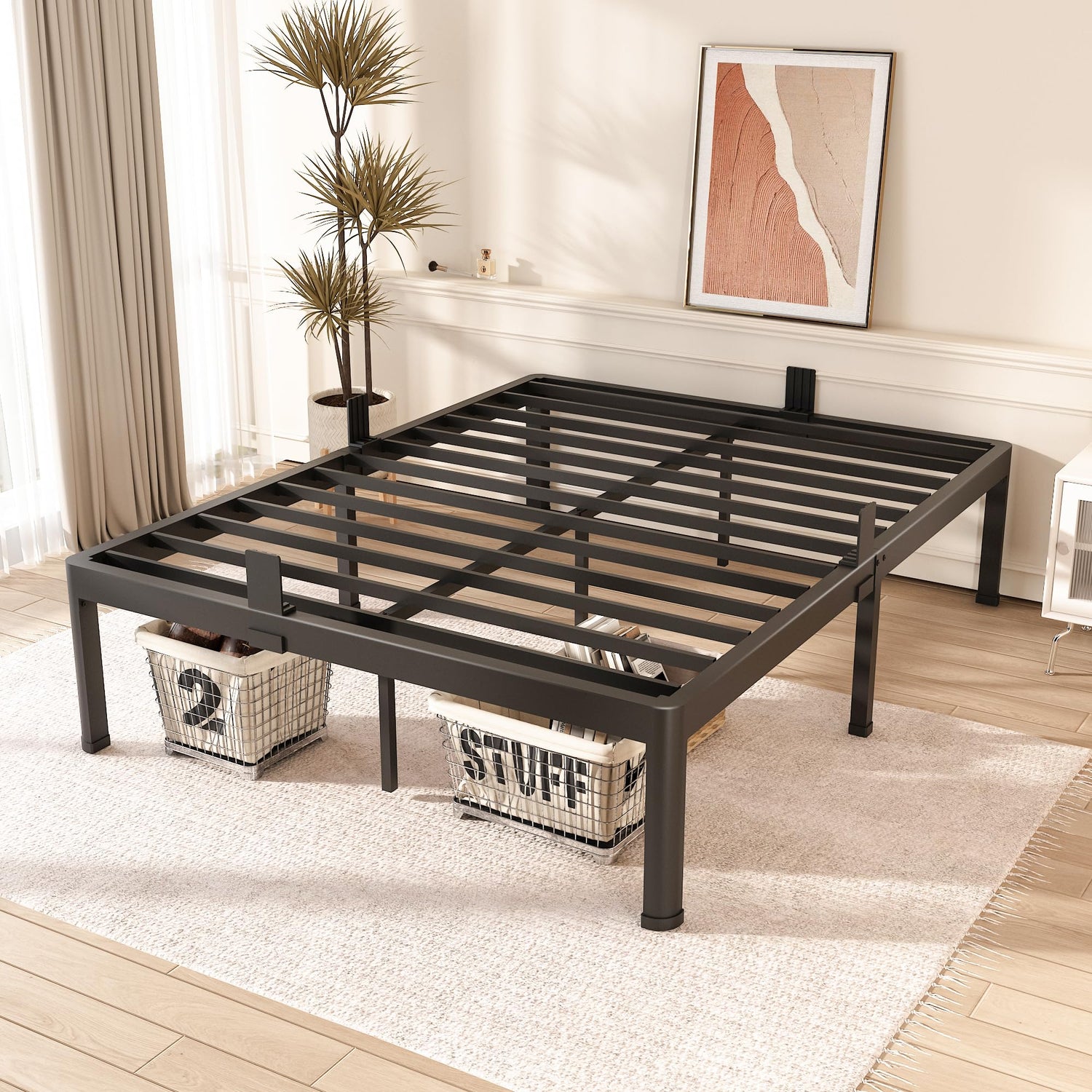 - Safety Design:The black bed frame queen is designed with rounded corners prevent injuries caused by toe bumps.The metal bed frame queen no box spring needed
