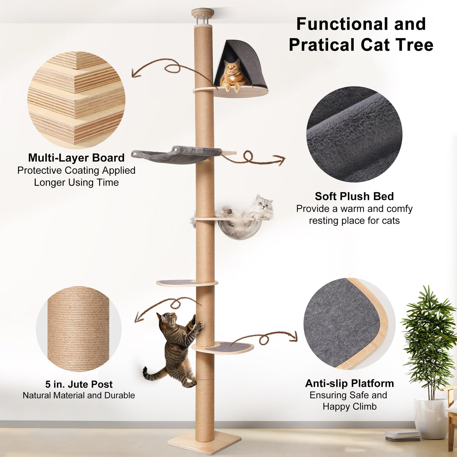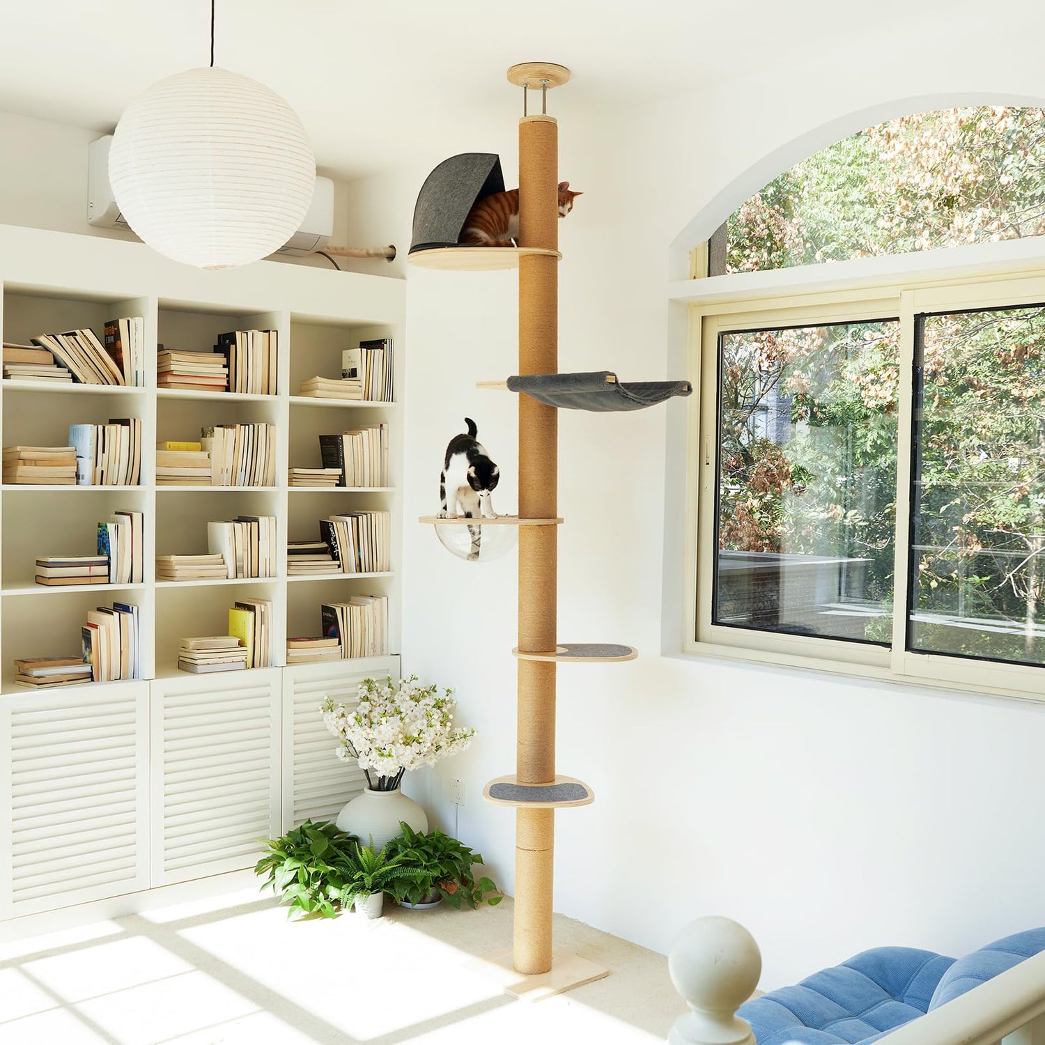 - SATISFY NATURAL INSTINCT - Cats naturally like heights, climbing to high places can burn off their excess energy and enhance their sense of security. This 6 level tall cat tree comes with ex-large soft hammock, 360°view transparent capsule, semi-enclosed cat condo and view perch. Cats can nap, scratch, and play in this cat climbing tree, one cat tree can satisfy all their needs.