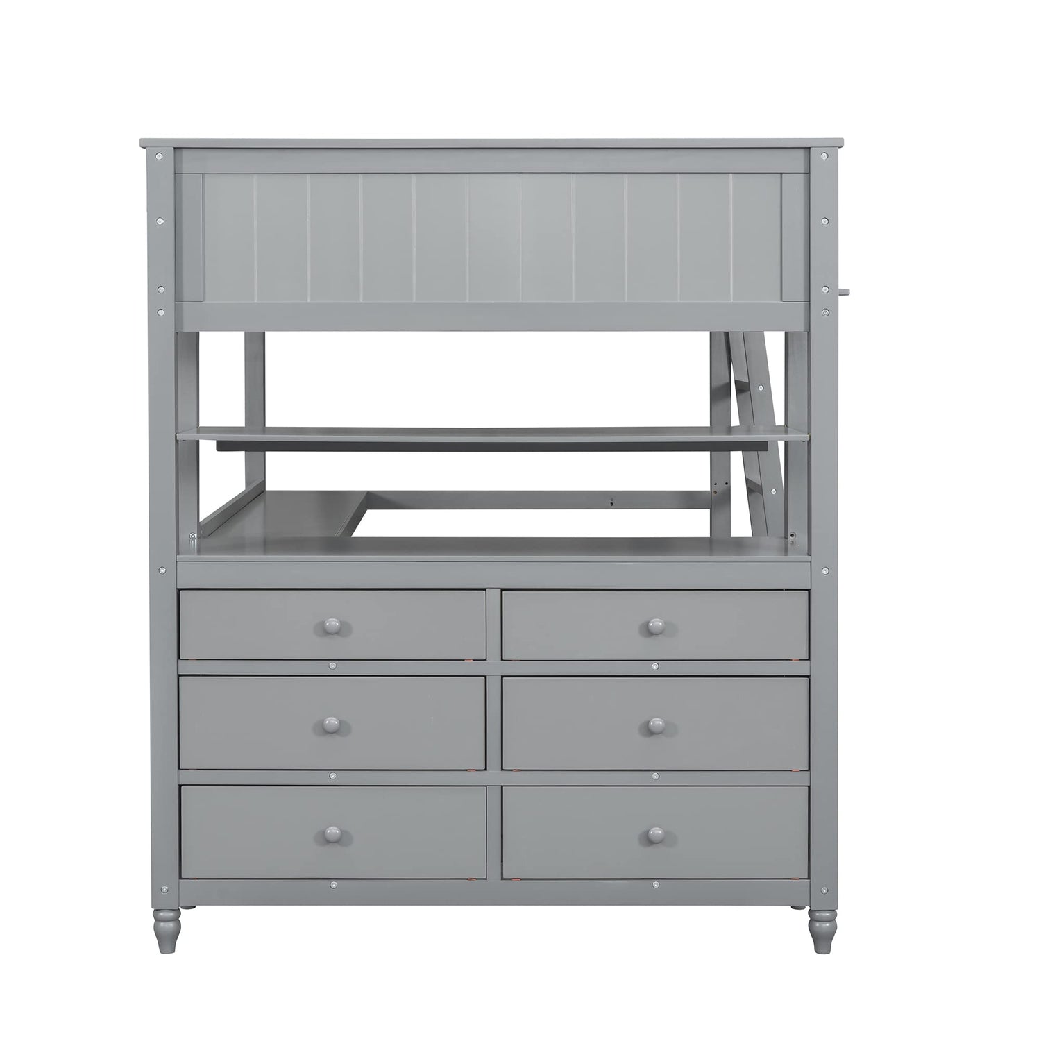 Full Loft Bed with Integrated Desk and Storage - Stylish Gray Wood Design for Kids, Teens, and Adults