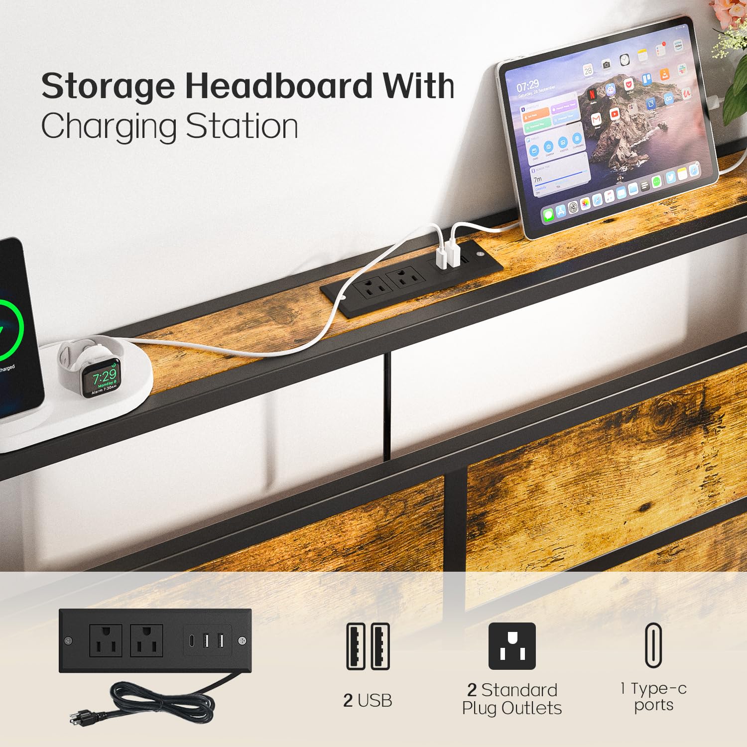 - Built-In USB Charging: Stay powered up with 2 AC outlets, 2 USB ports and 1 Type-C port conveniently integrated into the bed. Charge your devices or plug in a lamp without leaving your bed.