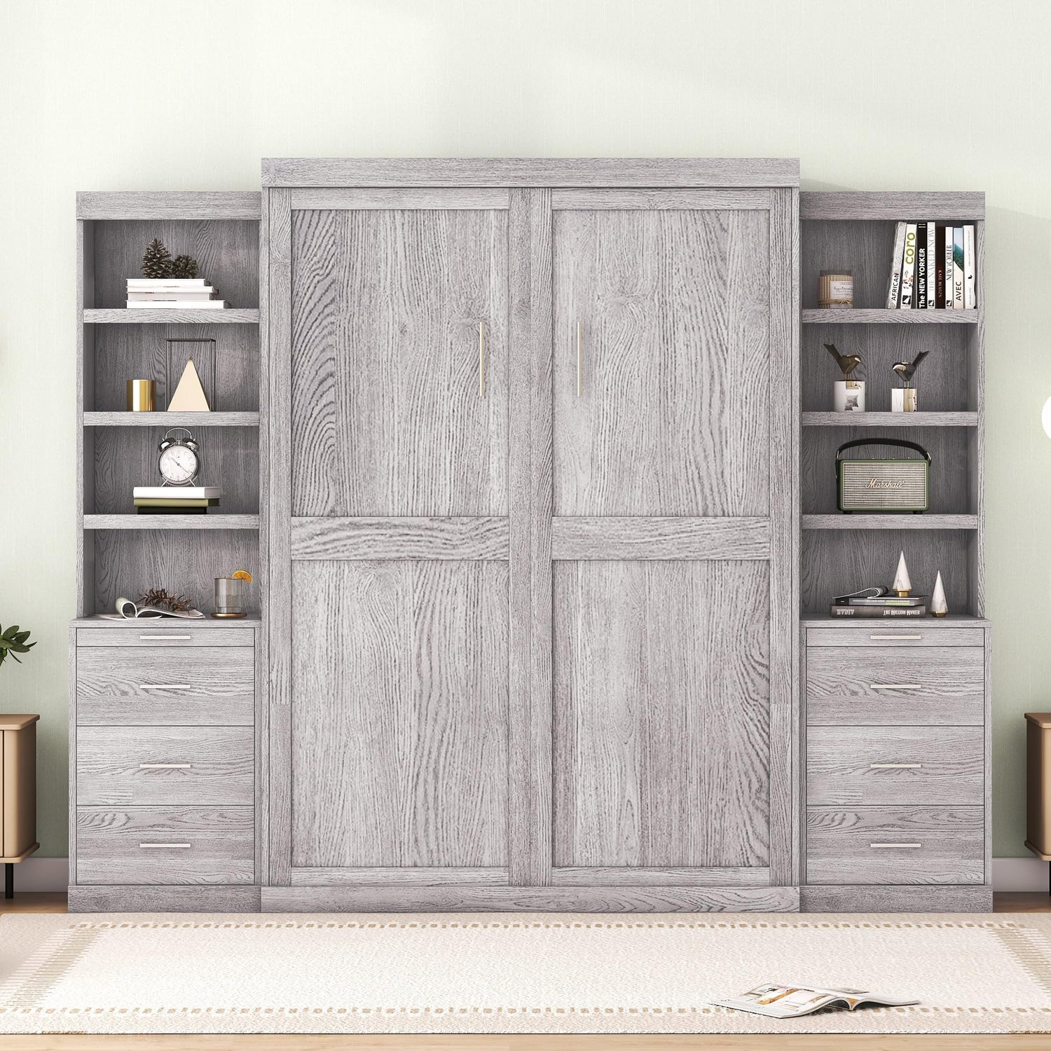 Full Murphy Bed Space-Saving Wall Bed with Storage Shelves and Drawers for Guest Room or Home, Easy to Fold into a Cabinet