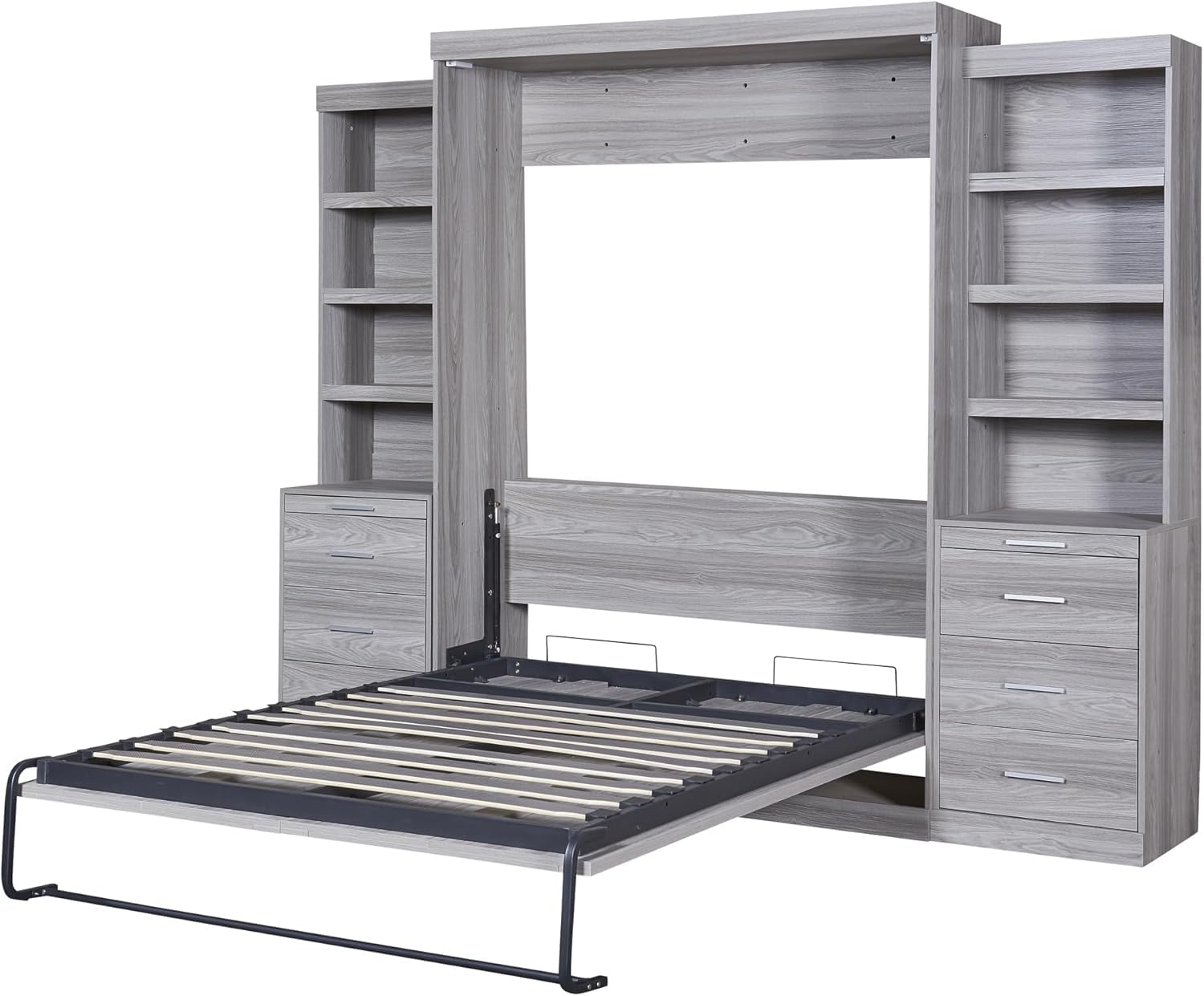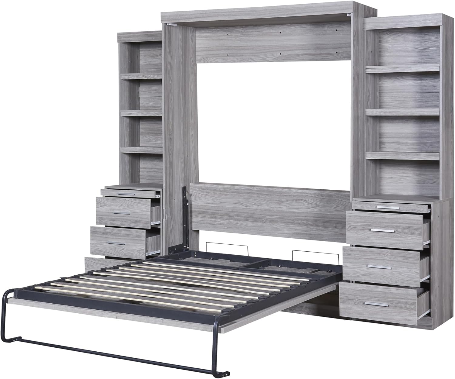 - [Murphy Bed with Storage] There are multiple cabinets and drawers on both sides of the bed, providing you with ample storage space. Whether it is books, ornaments, clothes, or jewelry, they can all be placed in them. You can put different items in each of the several drawers, and by sorting them like this, you'll be sure you'll find out where you're looking for them in no time next time.
