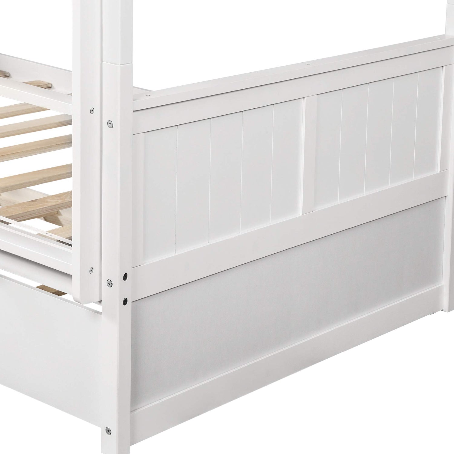 Full Over Full Bunk Bed with Trundle, Solid Wood Bunk Beds with Full-Length Safety Guard Rail and Ladder, Can be Separated to 2 Full Size platform Beds, for Kids, Teens and Adults (White, New)