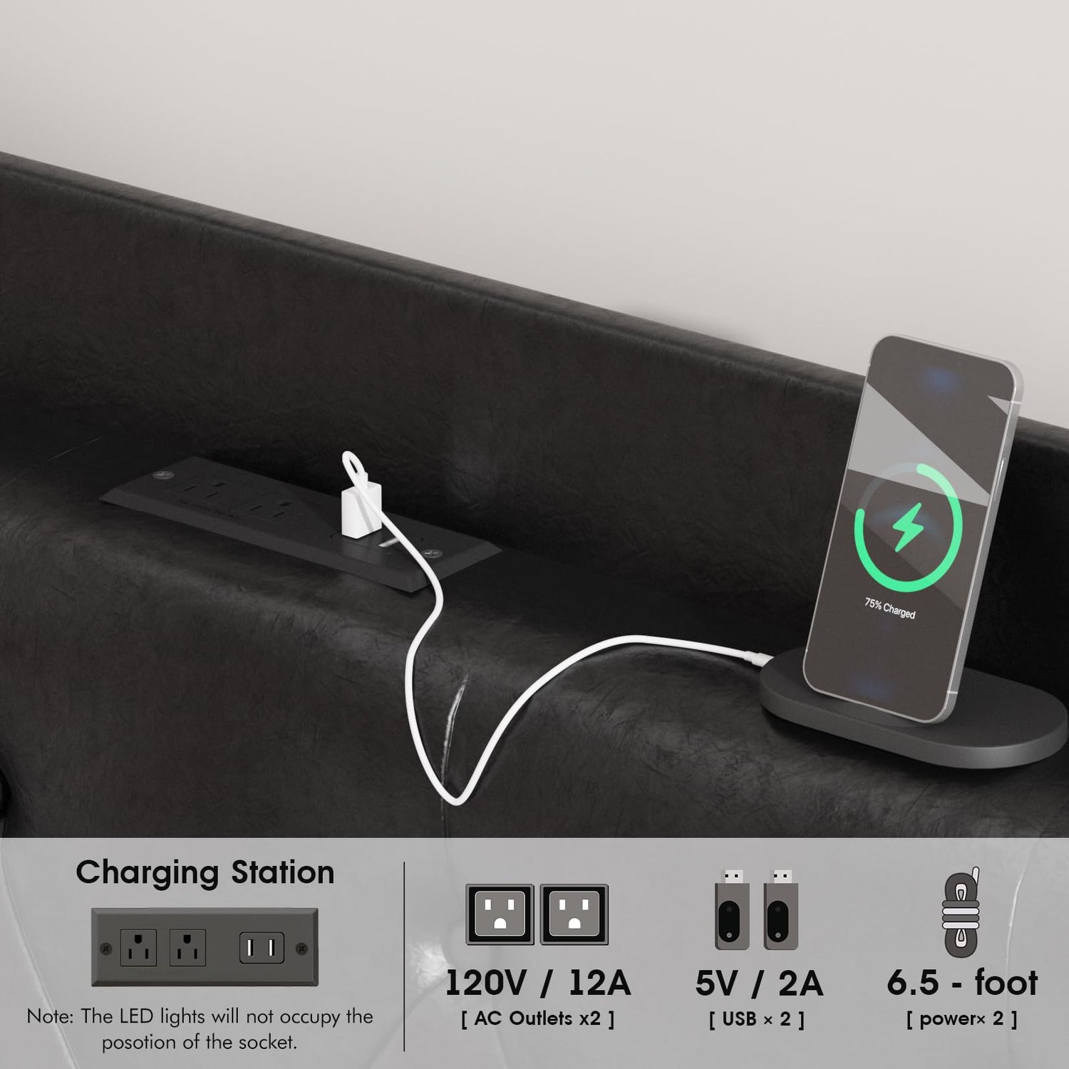 - [Leather Upholstered Button Tufted Headboard]: This bed frame with charging station is designed with the button tufted patterns, made by PU leather, have a better skin touch, comfortable and modern.