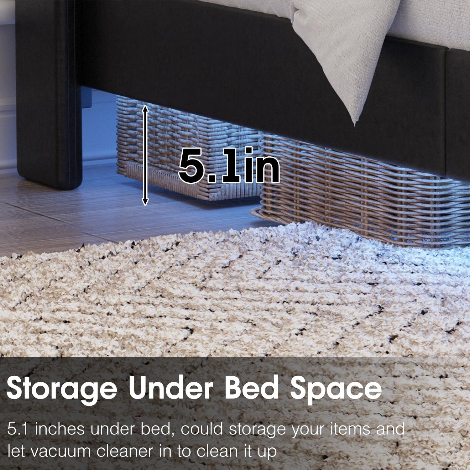 - [Bed with Adjustable RGB LED Lights]LED lights are installed at the bottom of the bed, which can be controlled through remote control, have more than 20 colors, make your nights more atmospheric.