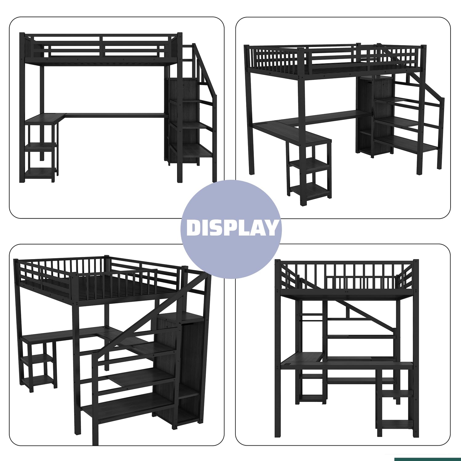- 【Full Size Loft Bed with Desk and Stairs】 The contemporary loft bed full size with desk features a built-in desk and sturdy stairs, perfect for maximizing space in small rooms. The sleek design combines functionality with style,it will be well matched with your home decor.Ideal for any living environments, like children’s bedrooms, universities, and bunkhouses.
