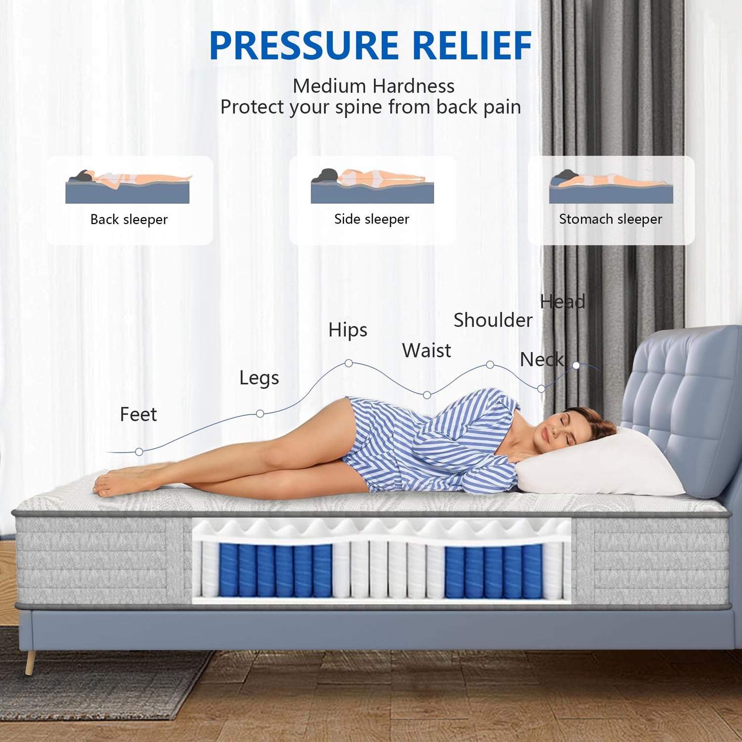 - 【Pressure-Relieve Comfort】Our full size mattress in a box are made of gel memory foam and hundreds of individually pocketed spring, Four layers of foam will not let you feel the coils underneath. The foam and inner spring work together to provide targeted support for children, heavier people, adults and seniors, relieve pressure points on shoulders, hips and legs, relieve your daily fatigue, medium firm mattress full is neither too soft nor too firm. Full size mattress 12 inch Suitable for most people's sleeping habits.