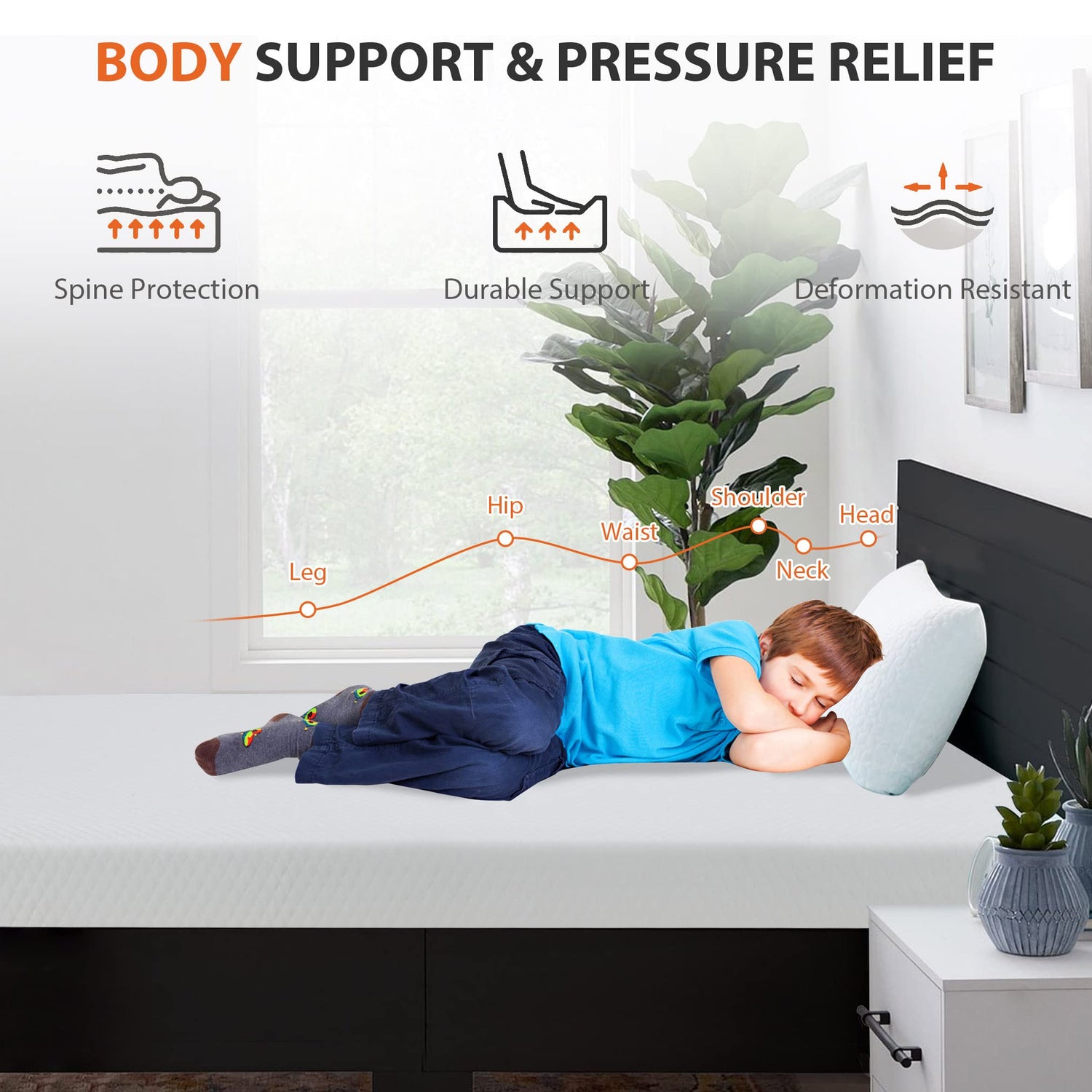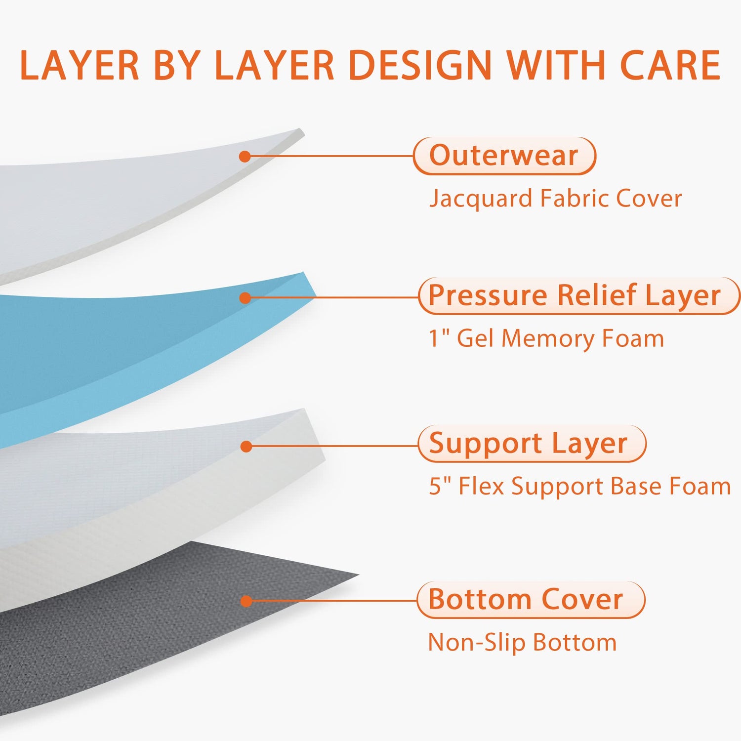 - 🛏︎【GEL MEMORY FOAM CONSTRUCTION】 The bamboo charcoal mattress has a moderate hardness and can evenly support various parts of the body, relieve stress, and conform to the sleep habits of the vast majority of people. On top is a gel-infused memory foam that keeps you cool. The second layer of the memory foam mattress is high-density support foam, which provides support more in line with the body curve, neither too firm nor too soft.