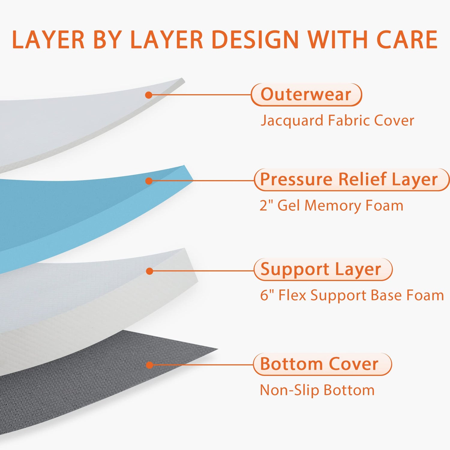 - đăCOOL & COMFORTABLE SLEEPă The full size mattress adopts air flow gel memory foam, which can adapt to the micro pressure points of the body and bring higher comfort. The mattress cover is made of high-quality knitted fabrics, providing superior comfort and durability. Knitted fabrics excel in great breathability and are soft-to-touch with enhanced air circulation for a cooler night's sleep.