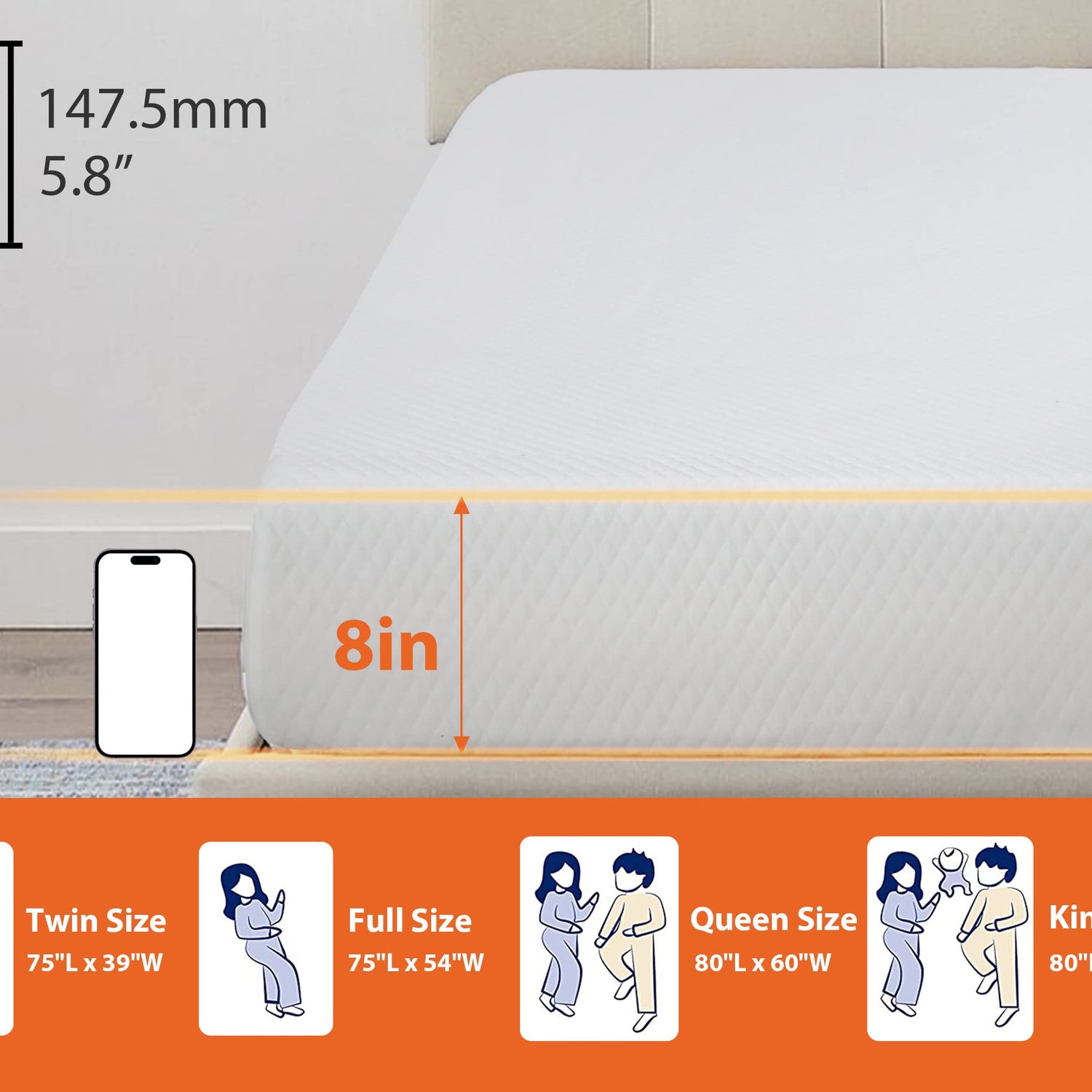 Full Size Mattress, Medium Firm Full Mattress 5/6/8/10/12/14 In Mattress for Pressure Relief & Cooler Sleep, Certipur-Us Certified Full Size Mattress in a Box Memory Foam Mattress (Full, 8 In)
