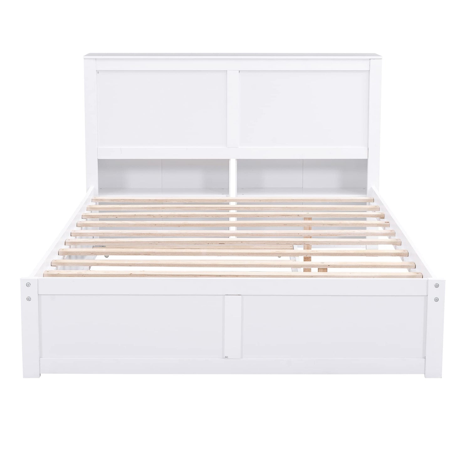 - 【Full Platform Bed with Storage Headboard】The storage headboard has 4 shelves on either side of the headboard. the internal storage space, which allows you to store some bedding, books, decorations, or other items. Wheel design on the bottom of the shelf is easy for you to pull out and push in, keeping the room tidy.