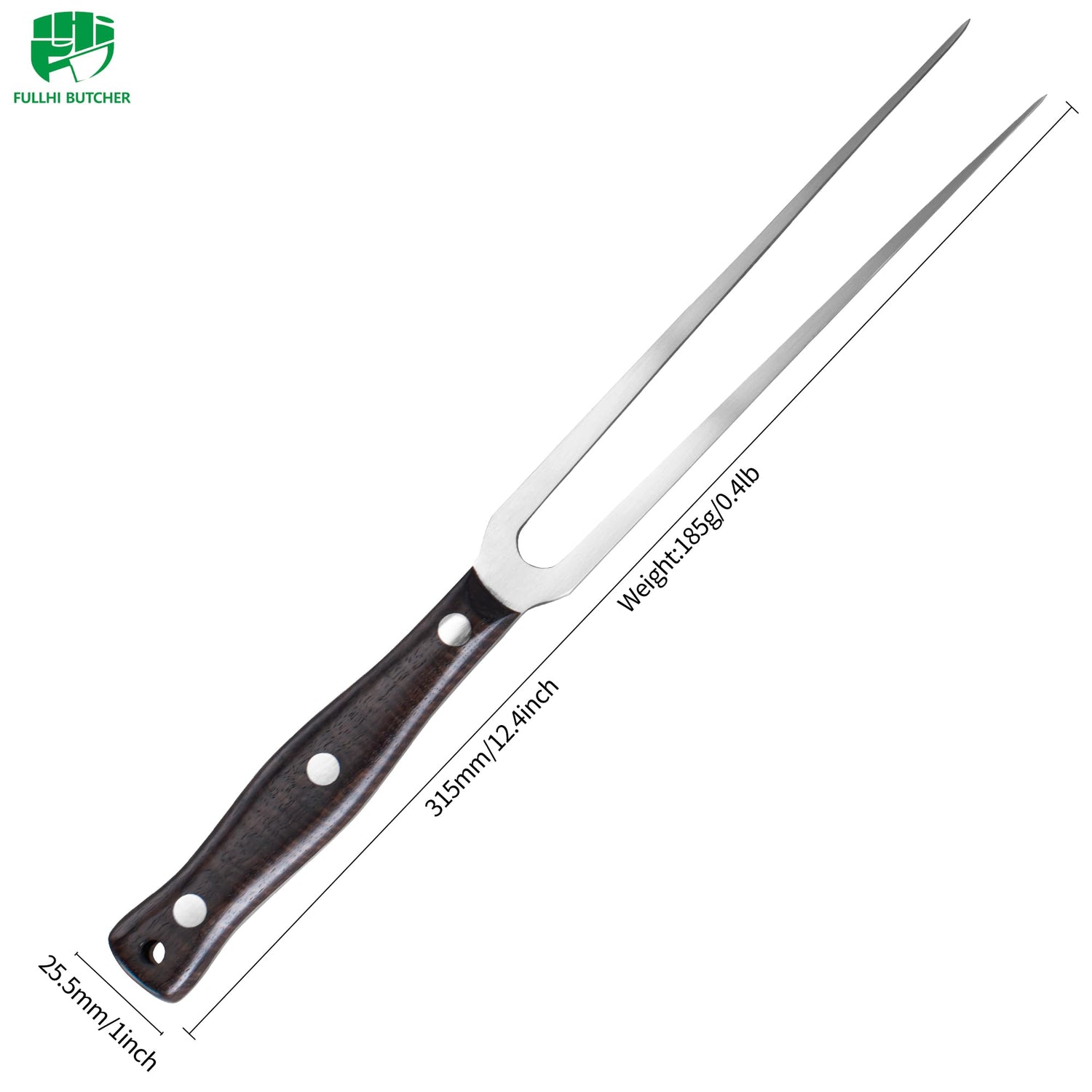 FULLHI butcher's fork with wood Handle Stainless Steel Meat Fork/Kitchen Tool, 12.4 Inch, Carving Fork