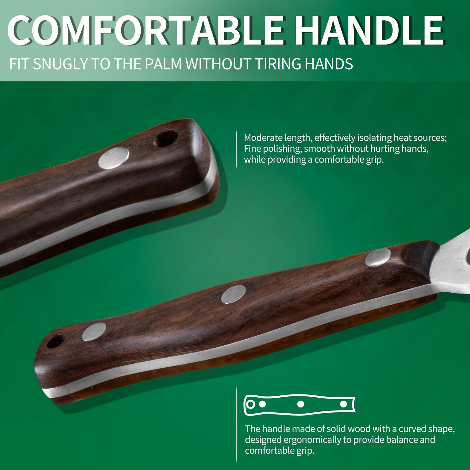 • DURABLE: The versatile meat fork and carving fork are heat resistant up to 450 degrees Fahrenheit, and the handles are made of logs for long-lasting durability.