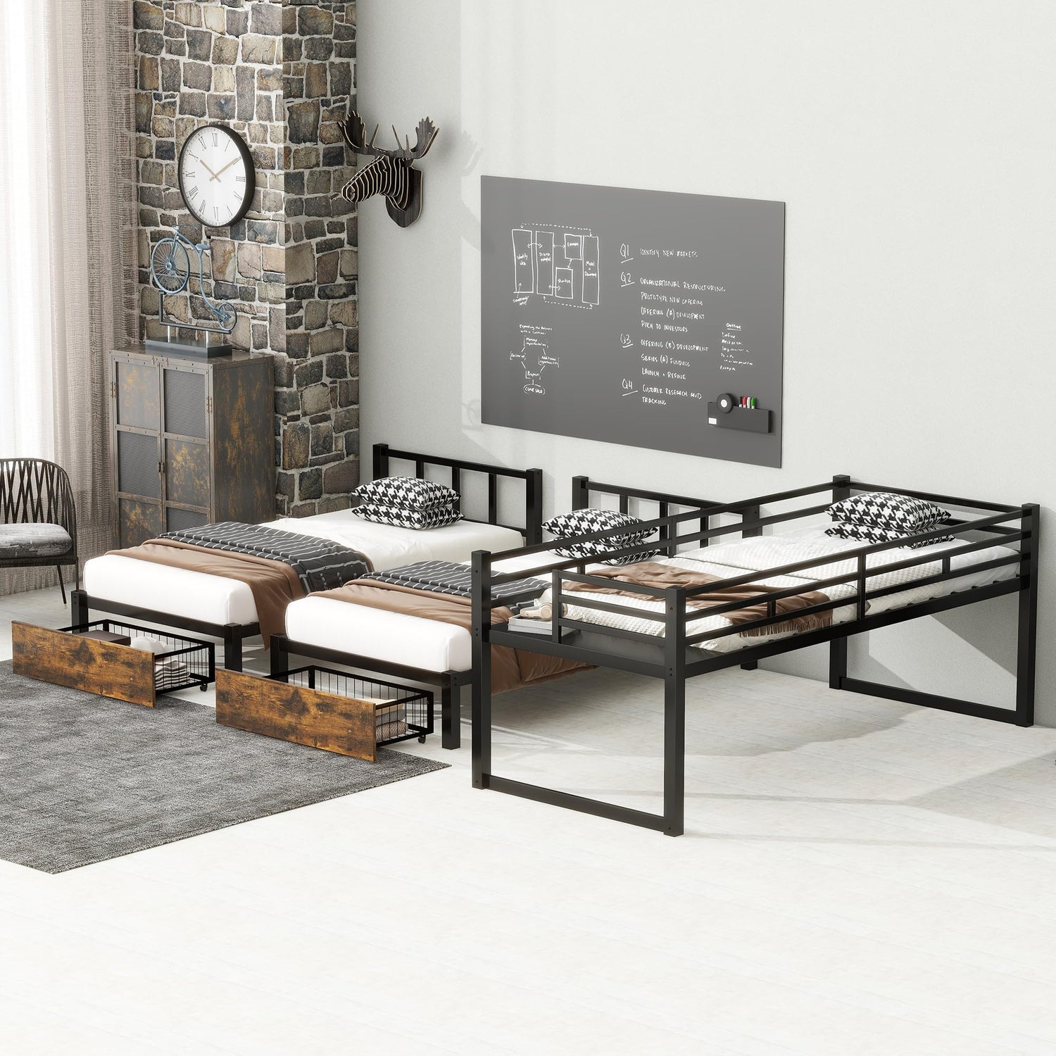 • 🙌Detachable & Versatile Design🙌Designed for flexibility, this 3 bunk bed for kids can be easily converted into 2 separate twin size beds and 1 twin XL bed. As your children grow and need more privacy, simply detach the beds and place them in different rooms.