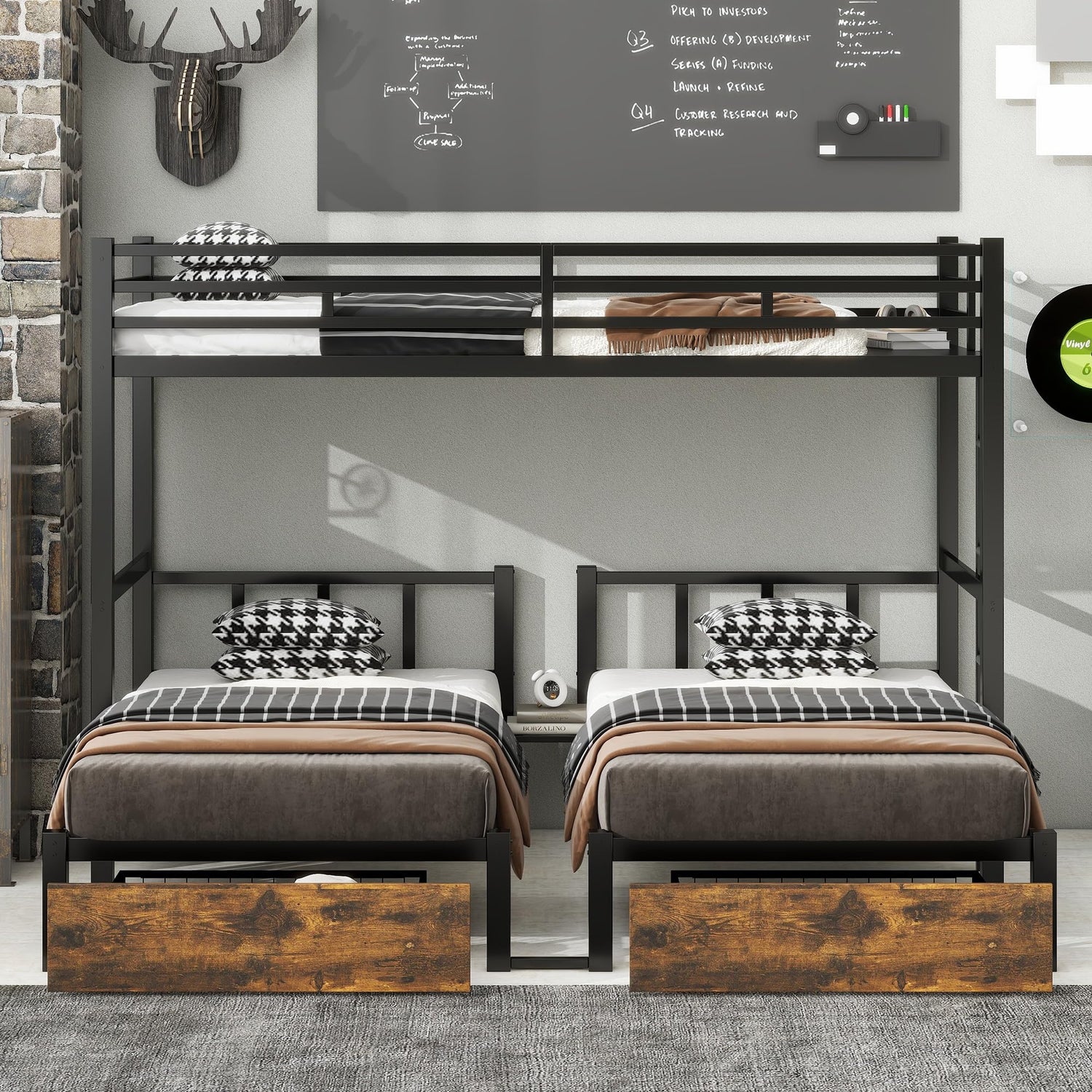 • 🙌Triple Bunk Bed for 3 Kids🙌This triple bunk bed features 1 twin XL upper bunk and 2 twin lower bunks, perfect for hosting sleepovers or accommodating multiple children. The metal triple bunk bed is ideal for families with 3 kids, offering both functionality and space-saving design.