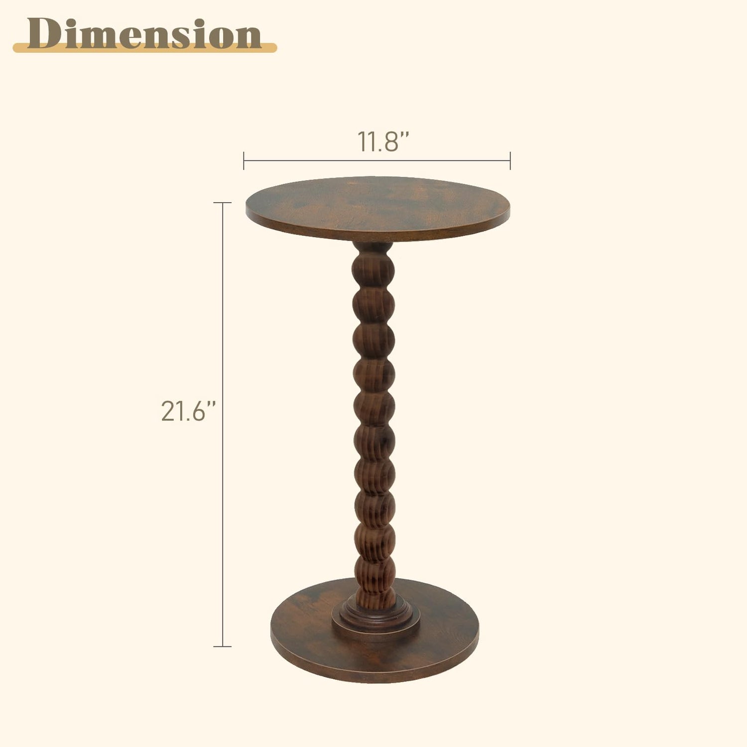 - Compact Size: The overall dimensions of this round side table are 11.8''Dia. x 21.6''high. Featuring a compact and lightweight design, the round side table saves space and allows for effortless placement anywhere