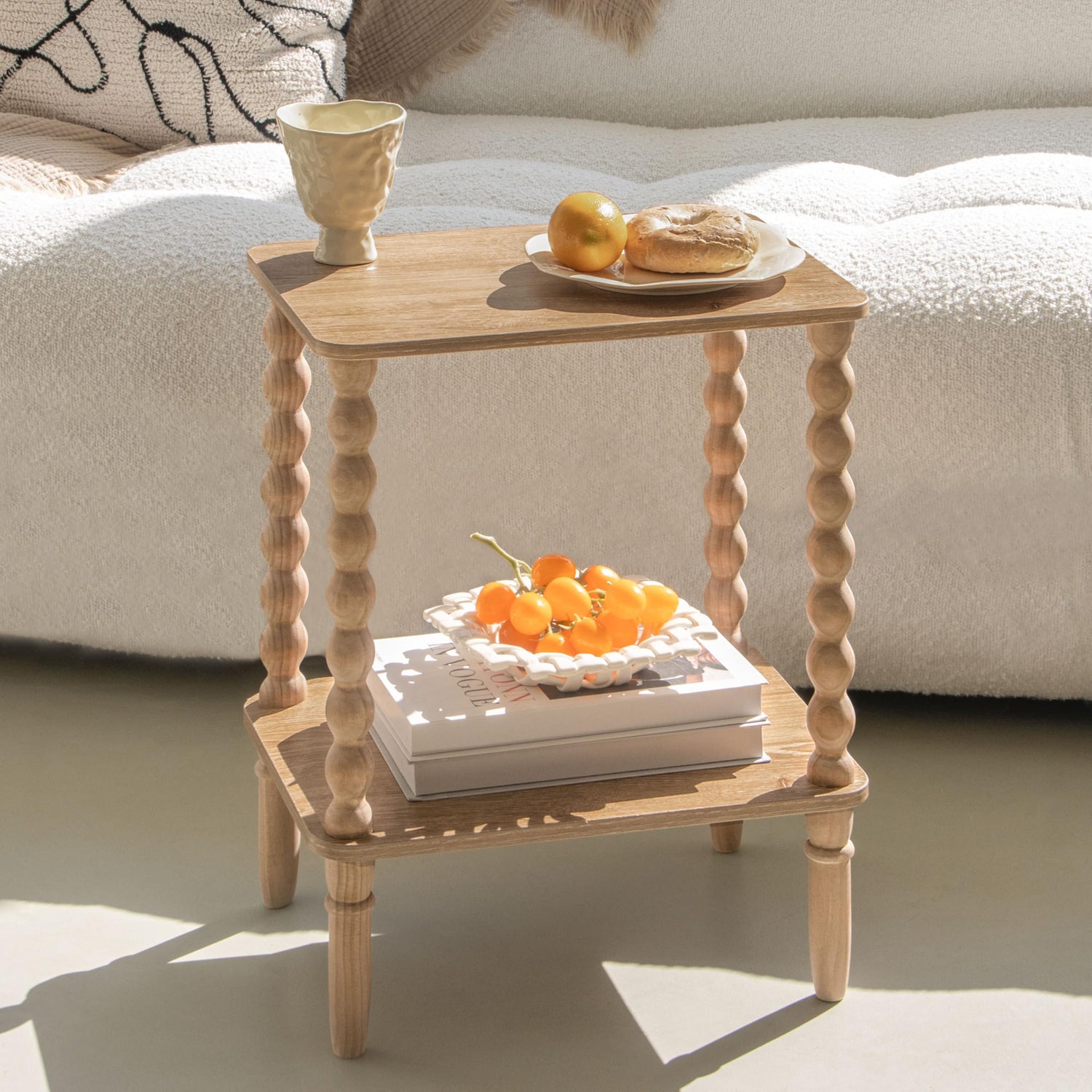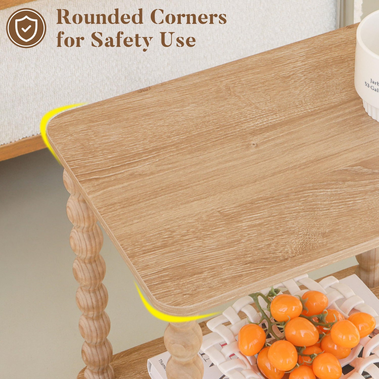 - Sturdy Construction: This end table is crafted from premium-quality MDF and features solid wood legs, ensuring longevity and steadfast stability, preventing the risk of tipping over. The rounded edges are designed to ensure the safety of both users