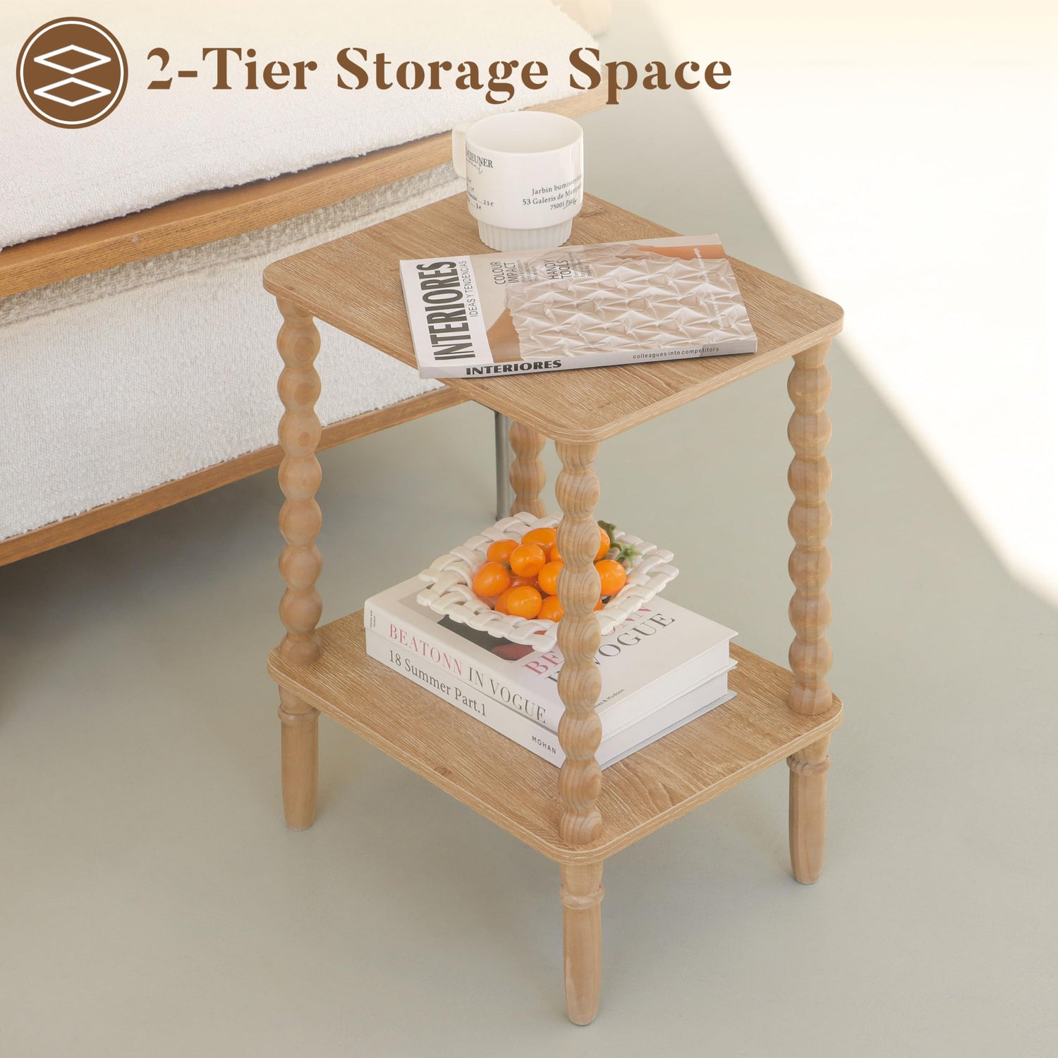 Fultyle Small End Table, Couch Side Table with 2-Tier Storage Shelf, Wood Coffee Table for Bedroom, Living Room, Small Spaces(Rustic Walnut)