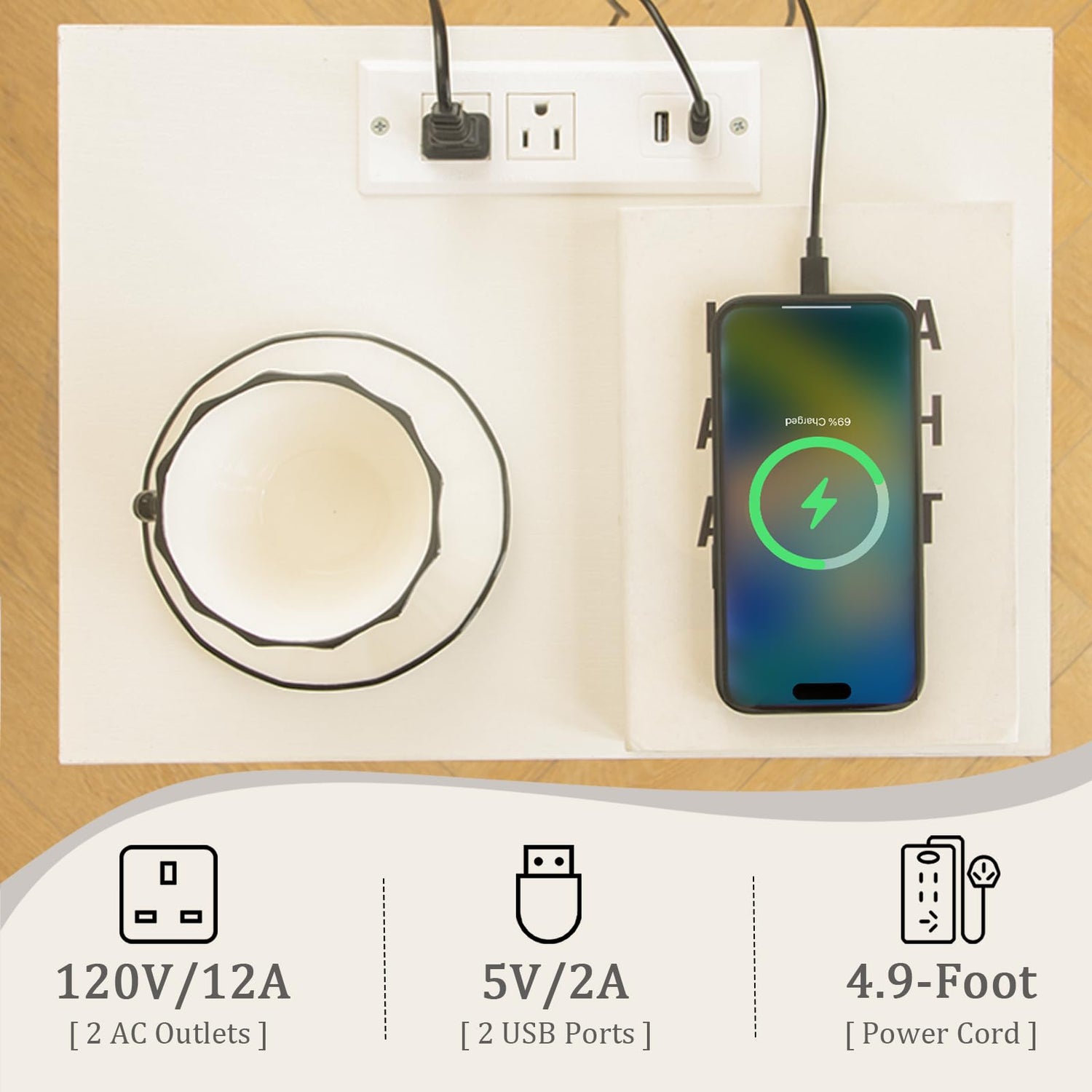 - Nightstand with Charging Station: This white nightstand features 2 power outlets and 2 USB ports, allowing you to conveniently charge your devices overnight without the clutter of cords, all while maintaining a sleek bedside table aesthetic