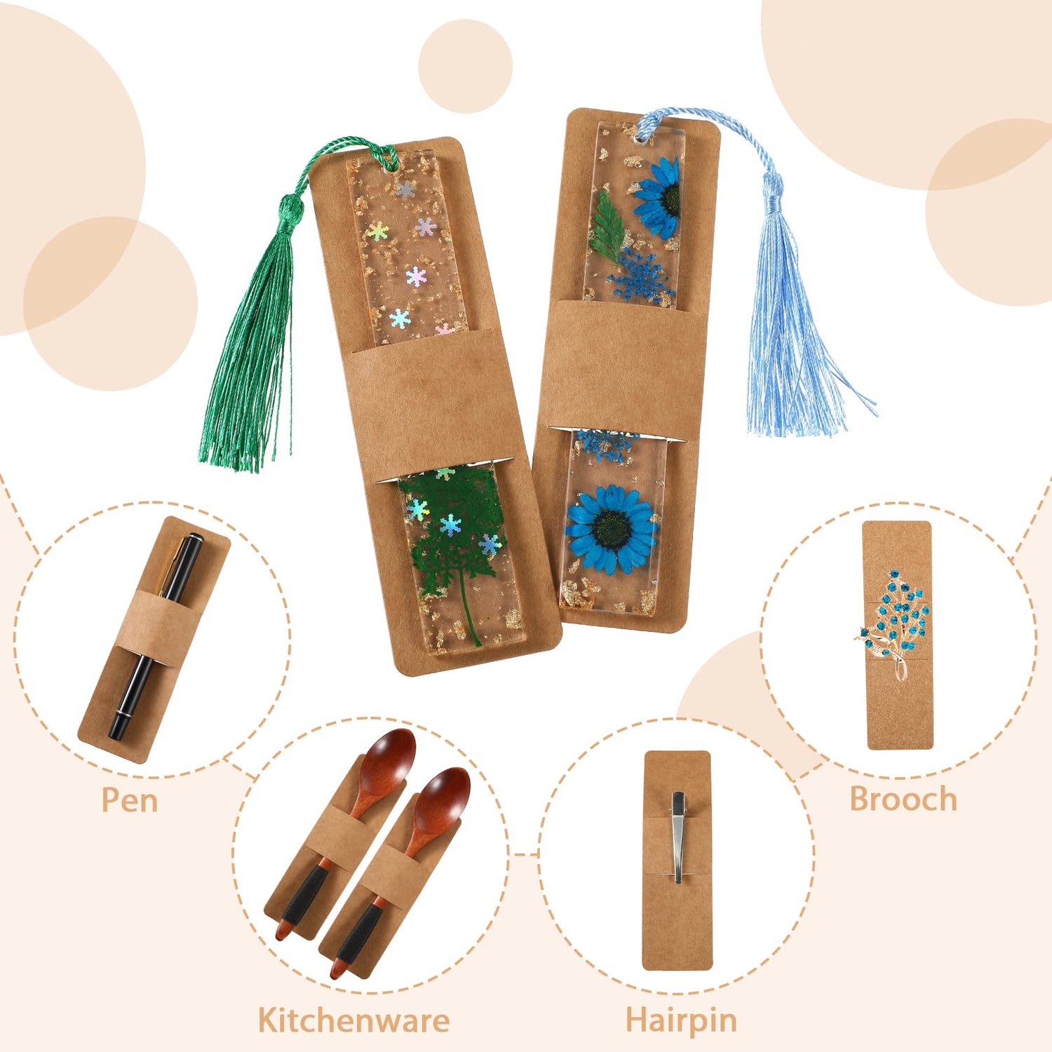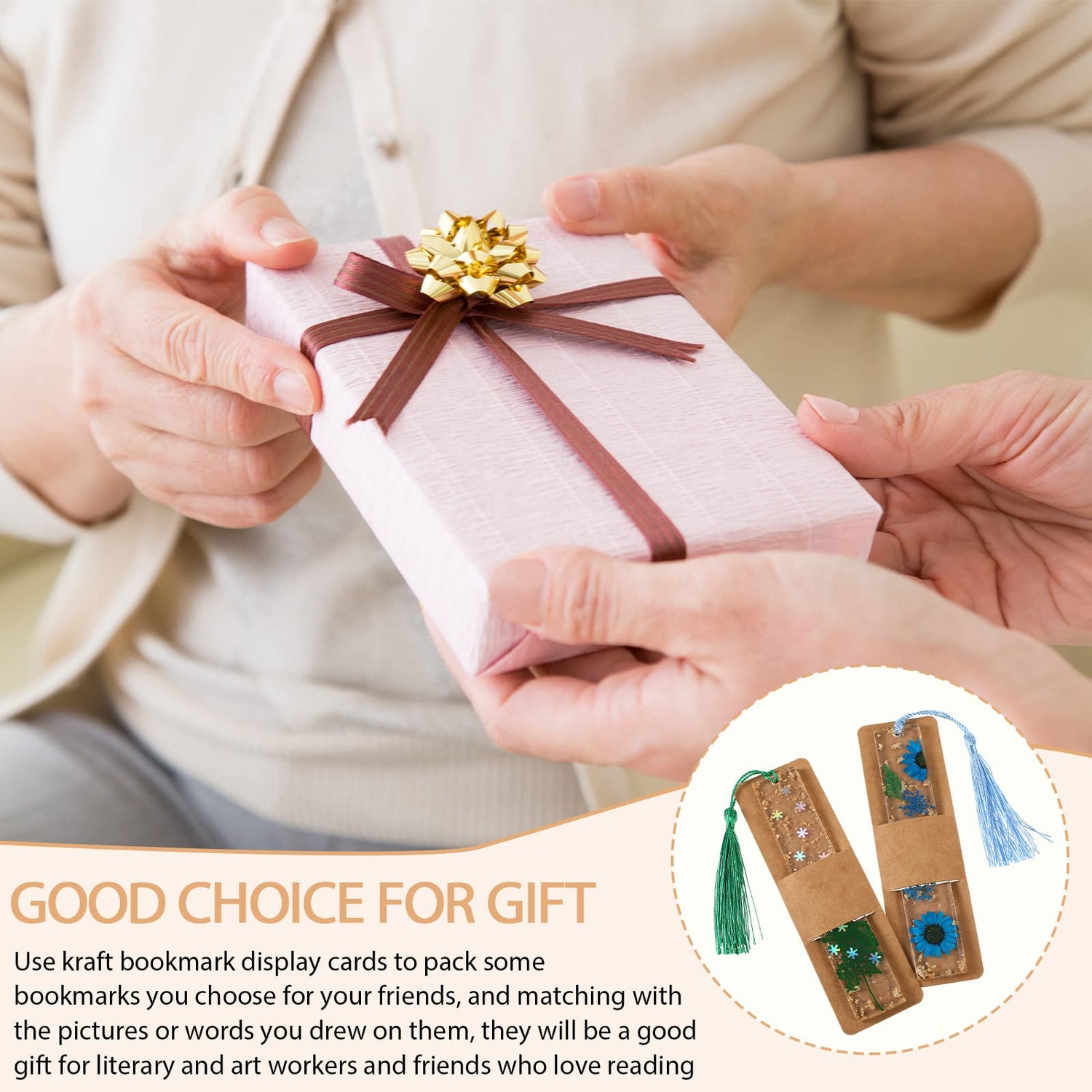 Fumete 50 Pieces Resin Bookmark Holder 5.9 x 1.8 Inches Kraft Sleeves DIY Bookmarks Display Cards for Wrapping Small Business Packaging Supplies Party Favor Gift (Brown, Cute)