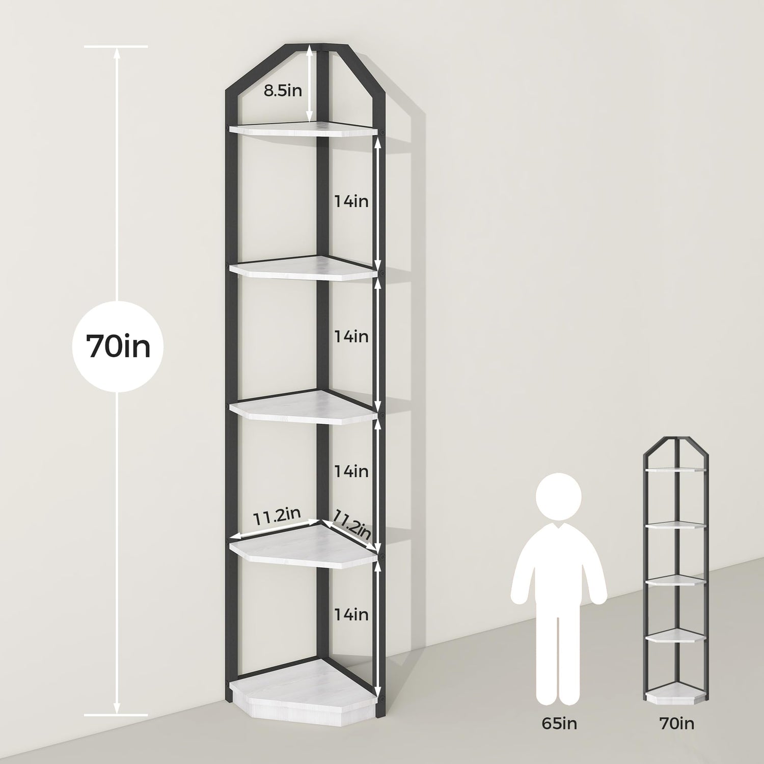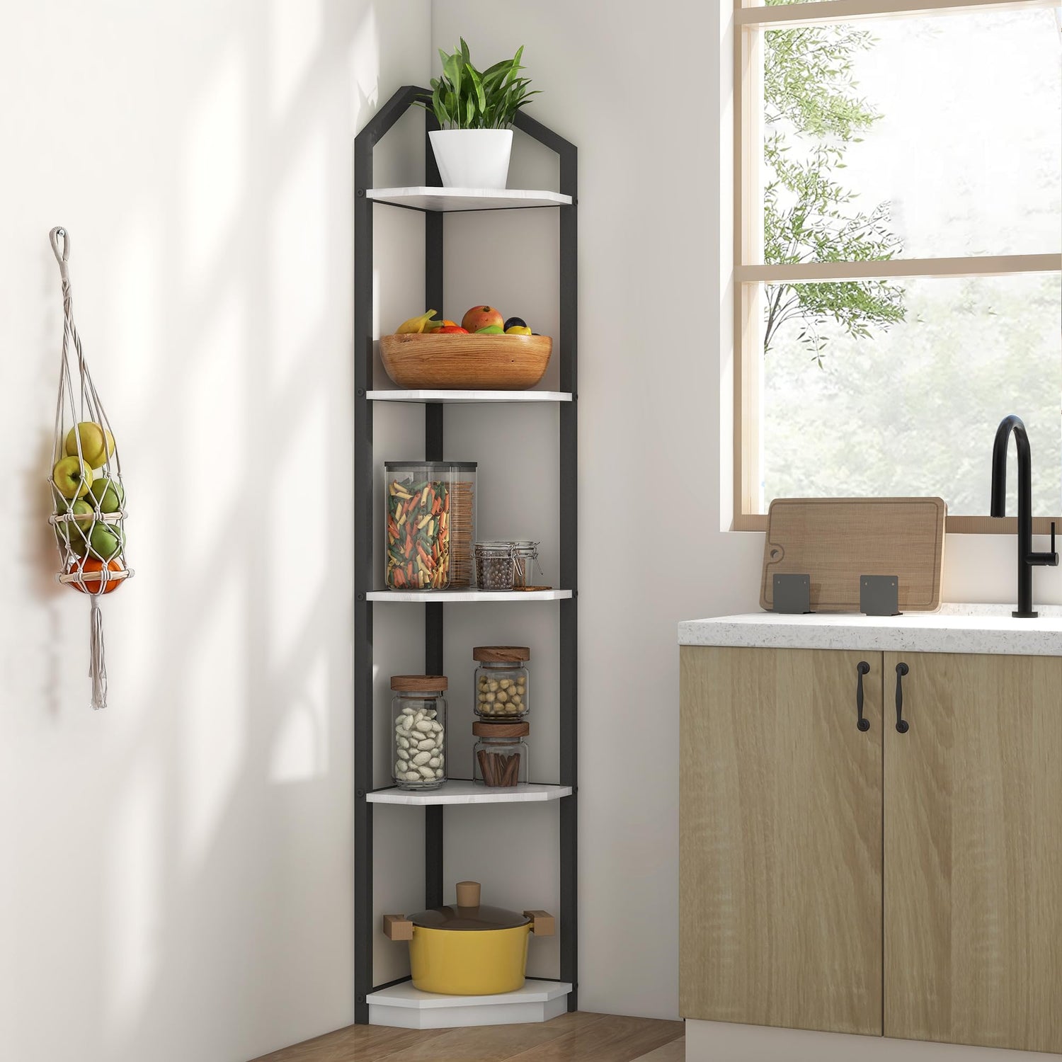 5-Tier Rustic White Corner Bookshelf - Multifunctional Storage and Display Stand