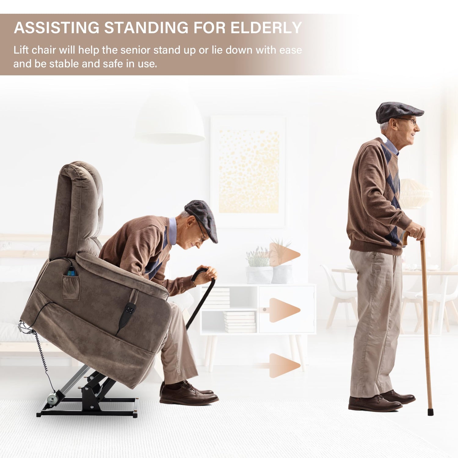 FUNECORP Power Lift Recliner Chair Recliners for Elderly,Lay Flat Velvet Tufted Recliner with Heat and Massage,Dual Motor Lounge Recliners for Living Room
