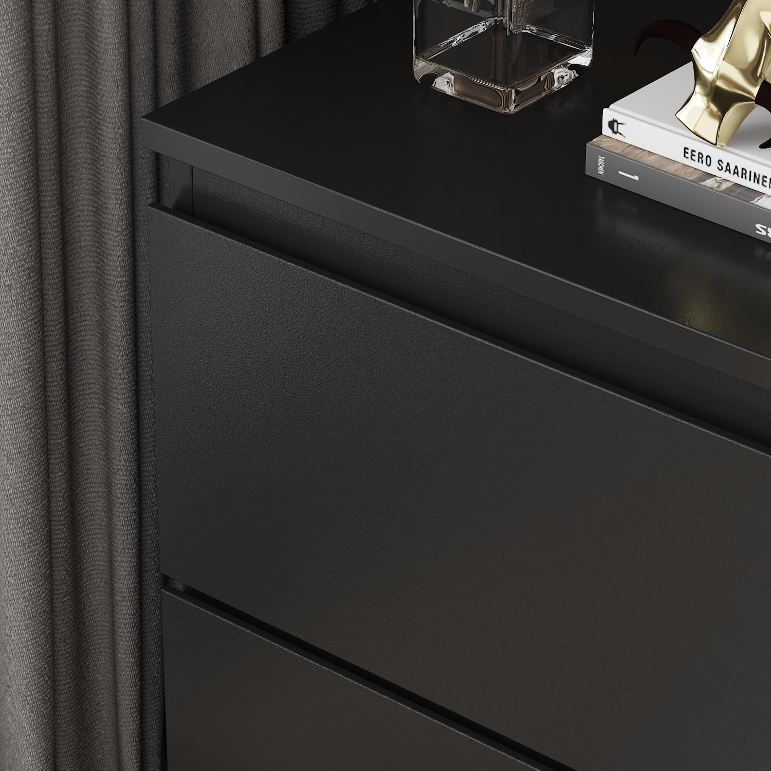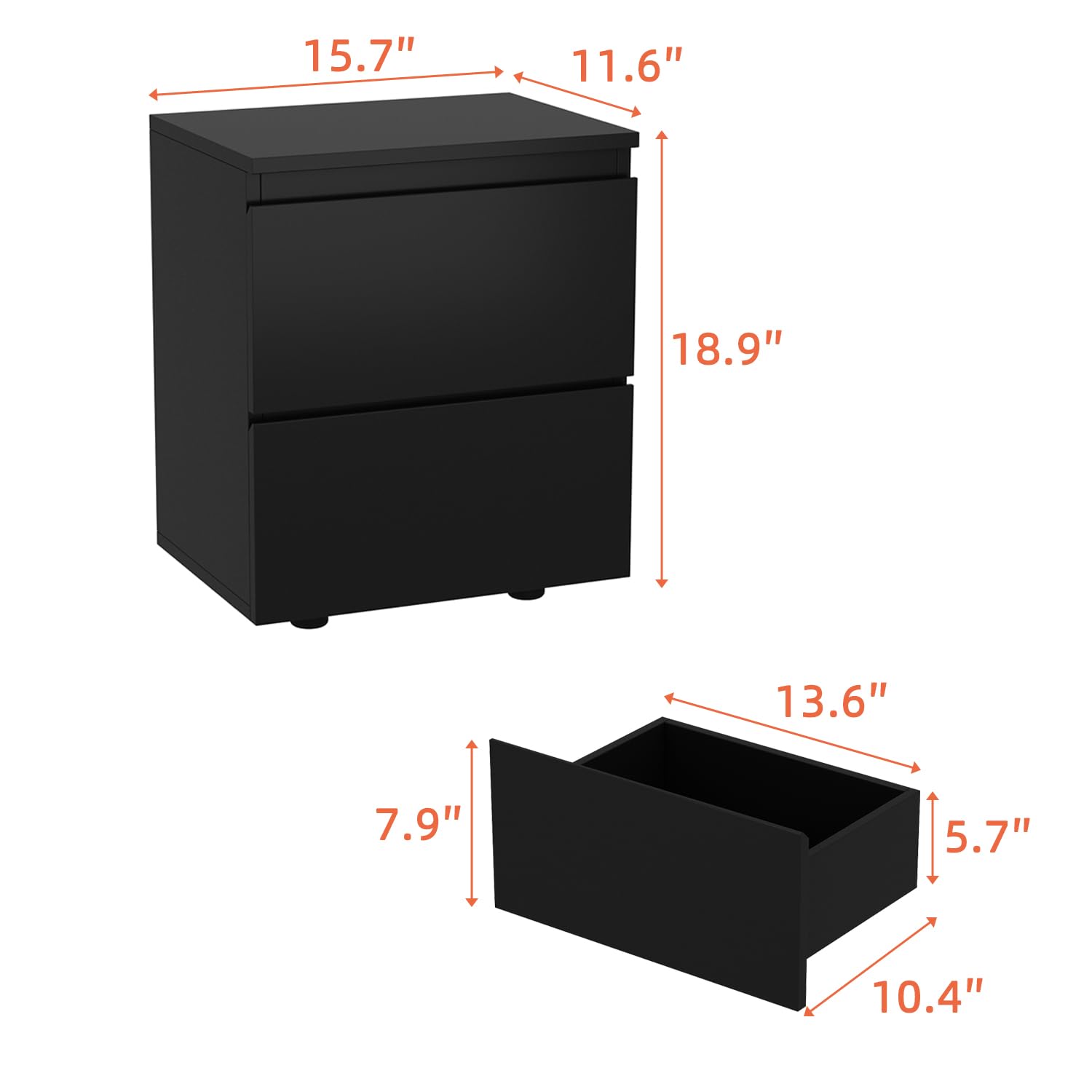 Details: FUNISIR Nightstand with 2 Drawers, Modern Bedroom End Table with No Handle, Wooden Bedside Storage Cabinet, Balck