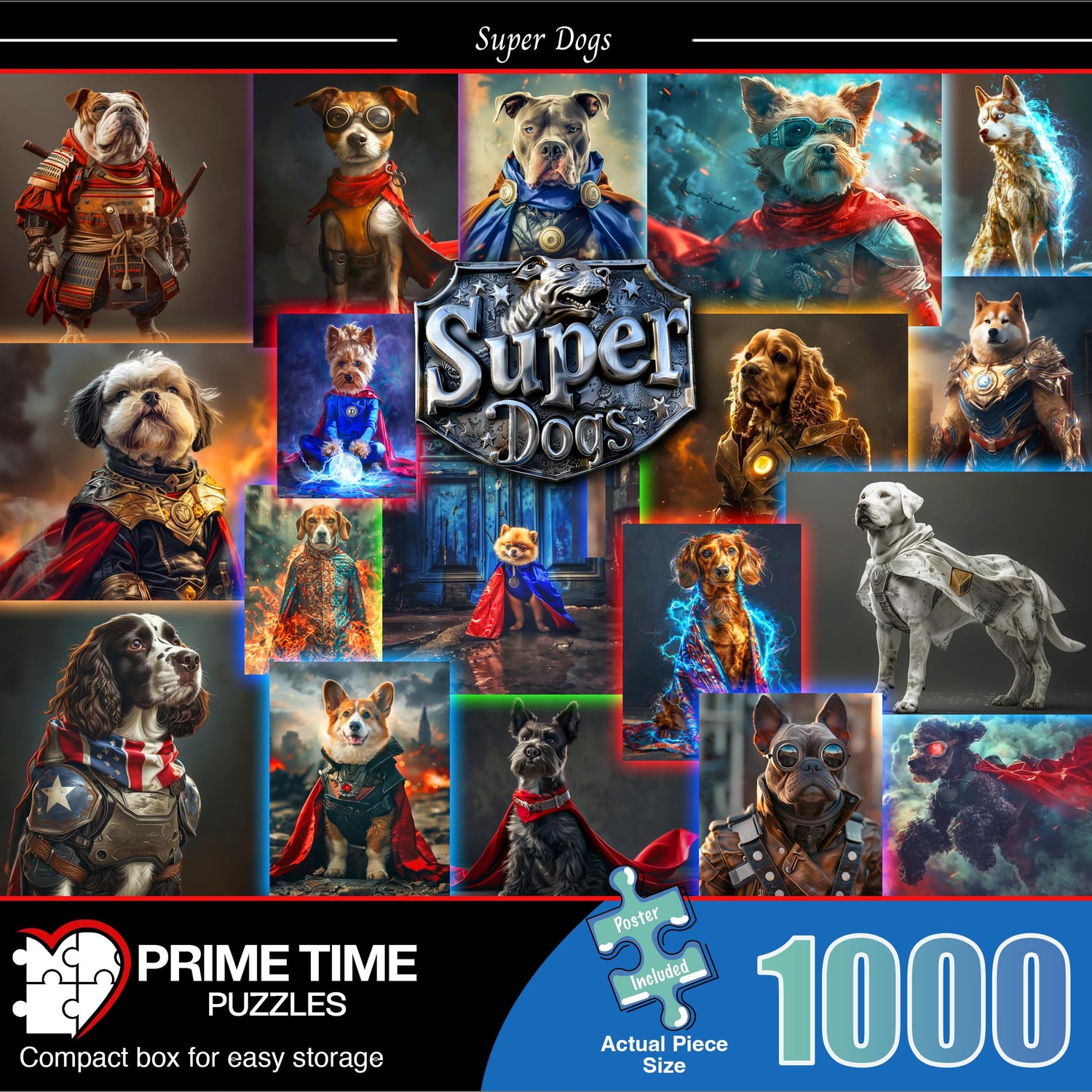 Funny Superhero Dog Puzzle - 1000 Piece Collage Jigsaw Puzzle - Precision Cut Vibrant, Glare-Free Imagery | Great for Adults & Kids - Cute and Colorful Puzzle for Family Game Nights (Super Dogs)