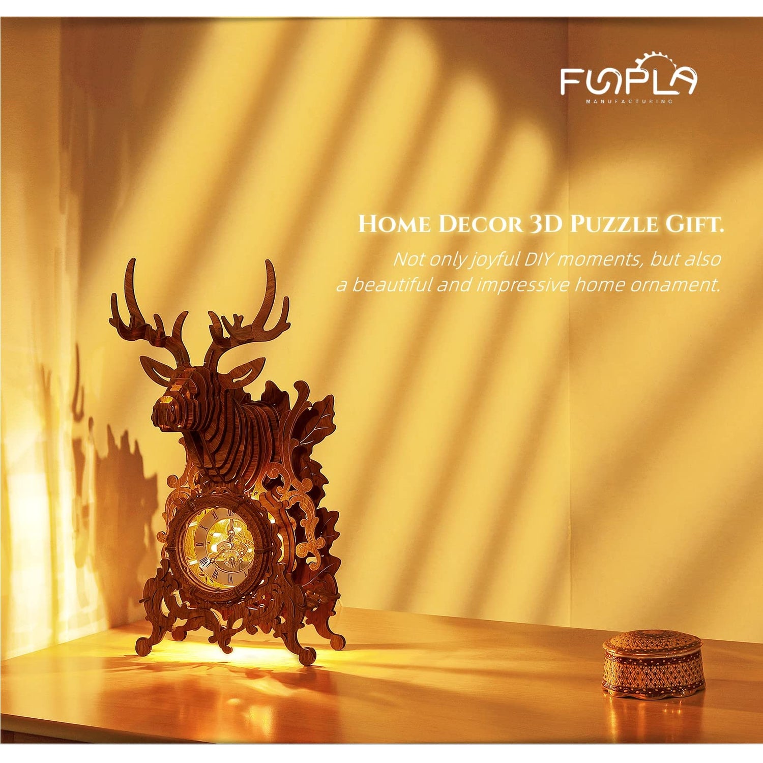 - đăImpressive and useful home dĂ©cor 3D puzzleăWith the delicate 3D Elk design and LED light belt, this 3D wooden puzzle clock model is a fascinating combination of a challenging 3D building model and useful home dĂ©cor showpiece.