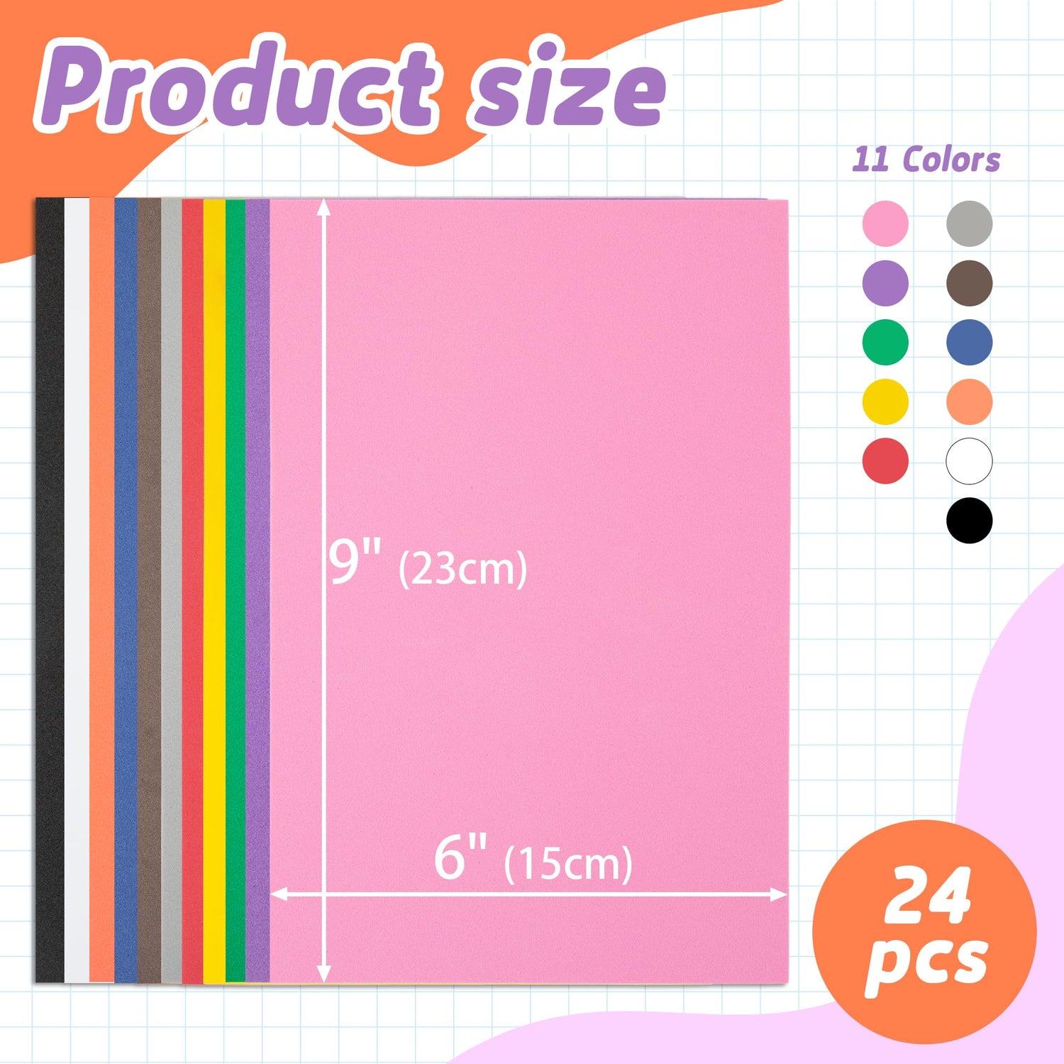 Funria 24Pcs 3mm EVA Embroidery Foam 6" x 9" Puffy Foam for 3D Embroidery Craft Foam Sheets for Cosplay Costume Sewing Hats Caps Garments Jackets Bags Backpacks DIY(11 Colors)