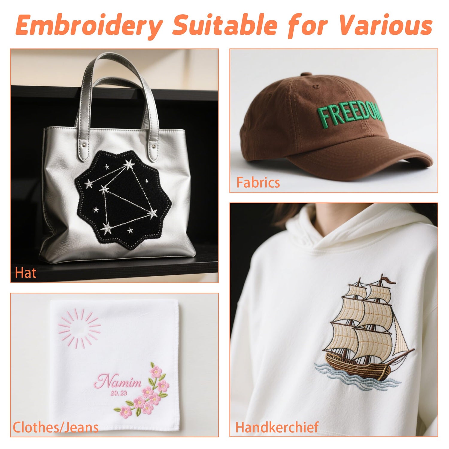 - Versatile Application:Suitable for both embroidery machine and hand embroidery. Compatible with home/industrial embroidery machines, and can be freely cut into any shape. Paired with specialized positioning tape to prevent shifting, making it easy to achieve flawless patterns!