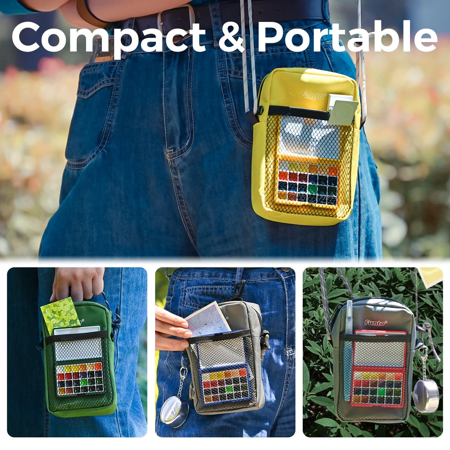 Funto Mini Watercolor Paint Set, All-In-One 24-Color Travel Paint Kit, with Crossbody Bag, Watercolor Journal, Paint Water Cup, Pocket Set for Artists
